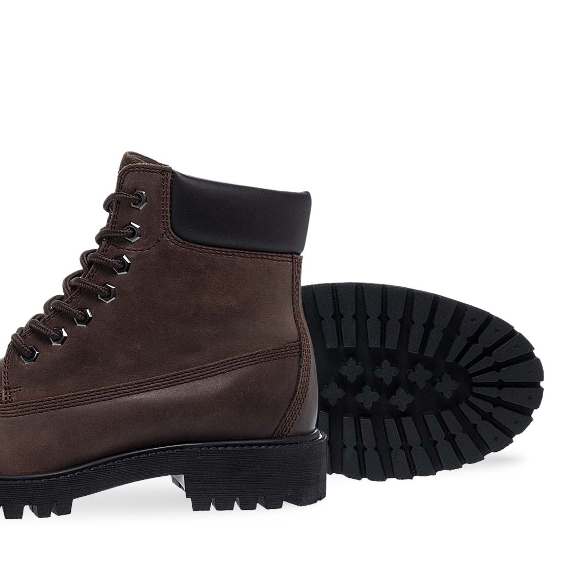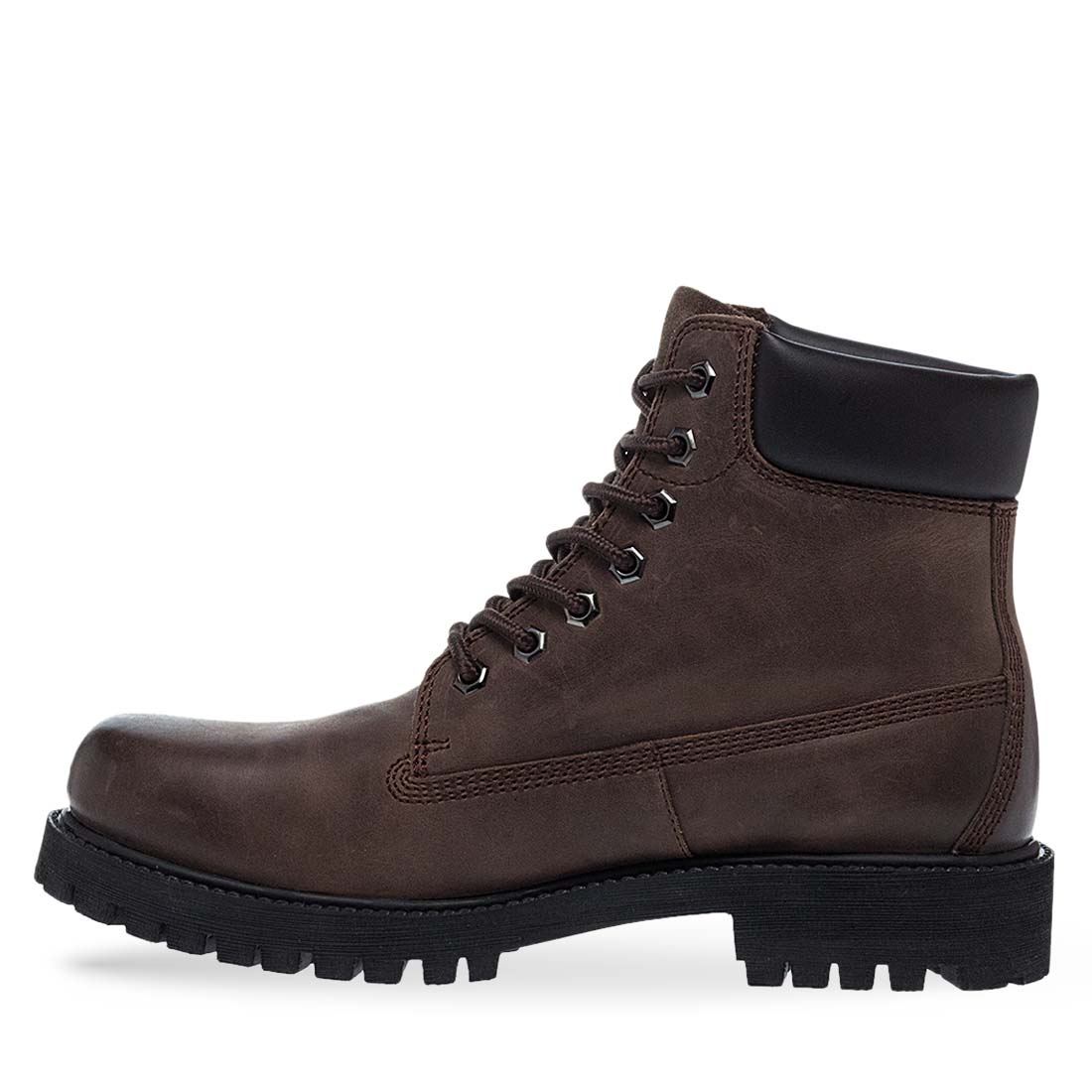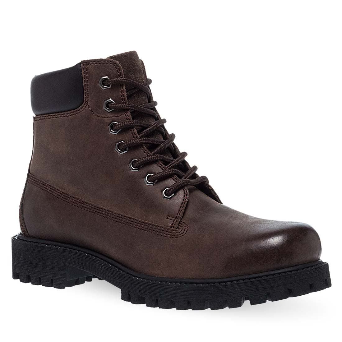 Men''s leather ankle boots by Parex. Men’s brown leather hiking-style ankle boots with laces and non-slip sole; perfect for rugged durability and winter style.