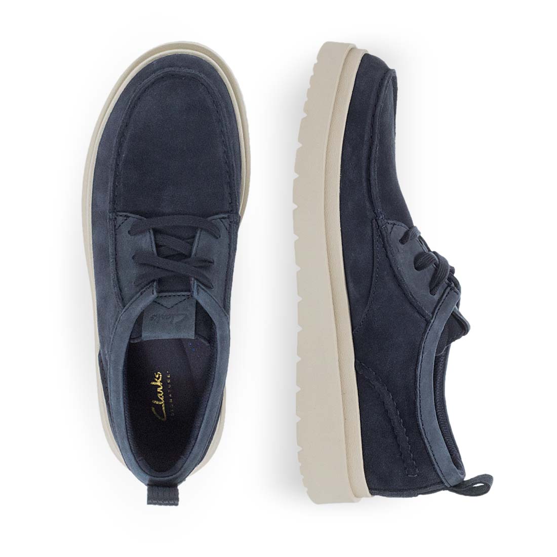 Blue casual shoes by Clarks. Elegant shoes in modern design with super comfortable sole and elasticated panels. Soft insole. Made of real leather. Ideal to use day to night. Almond toe and easy to wear.
