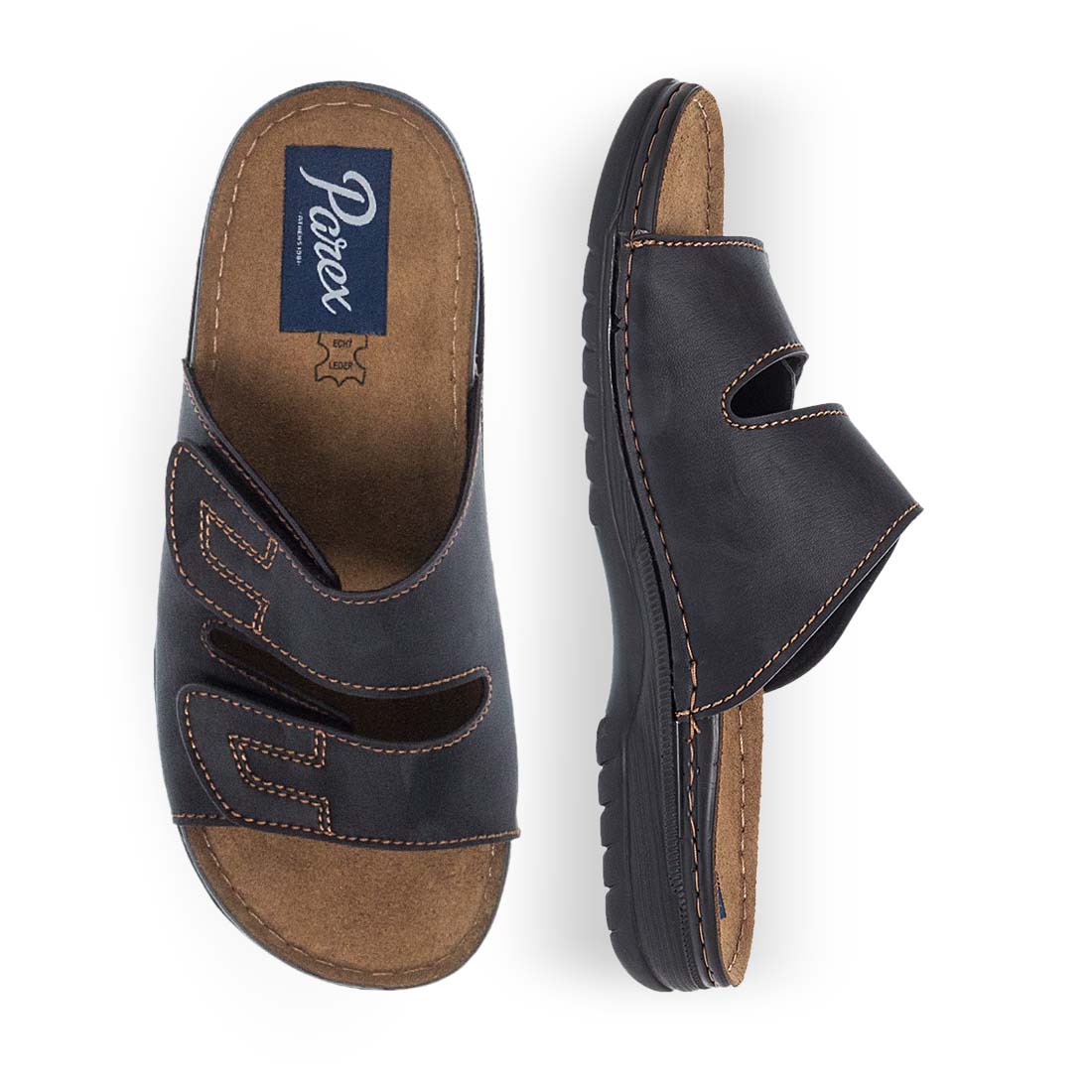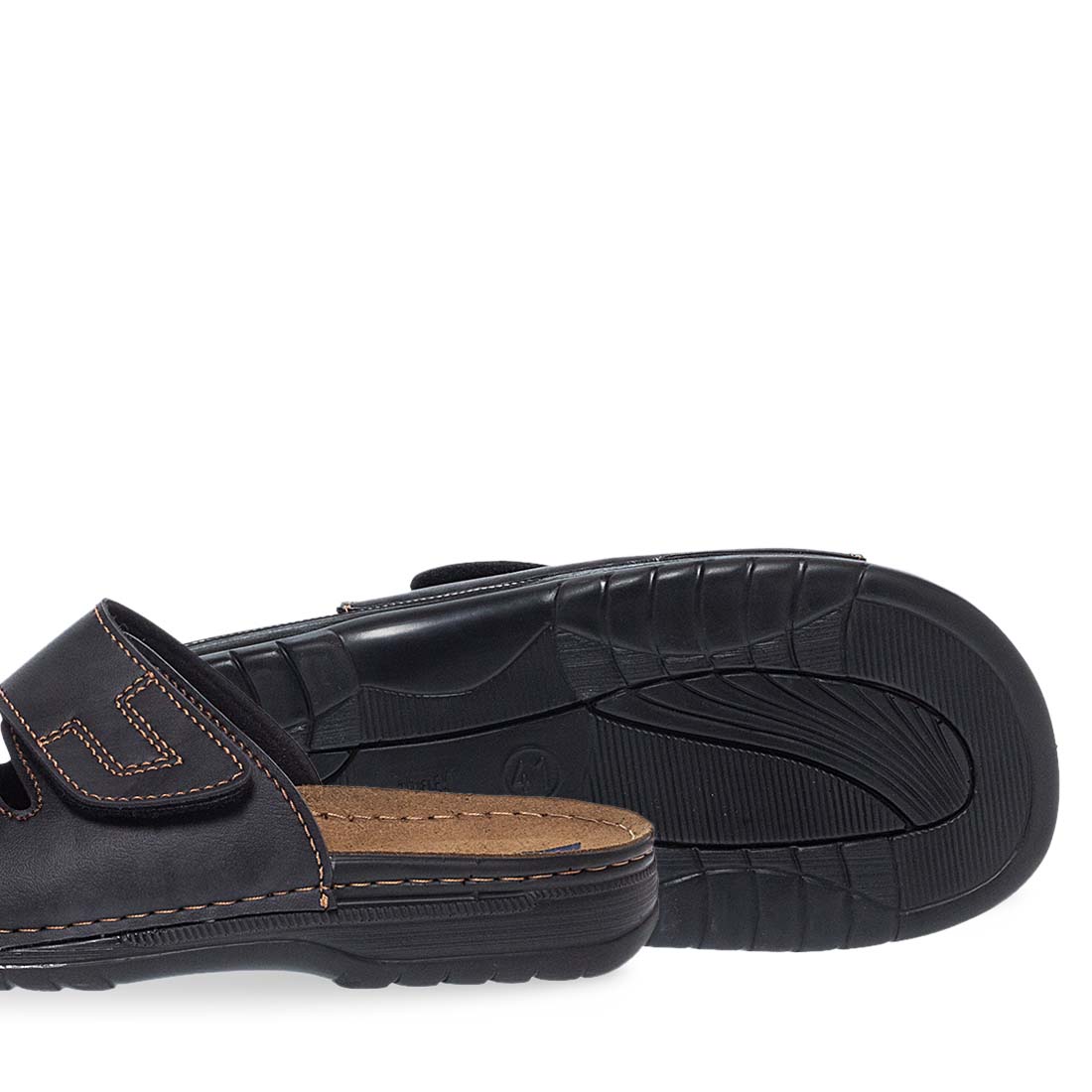 Comfortable mules by Parex. They have 2 straps with velcro on the upper so they fit perfectly on any type of foot. Leather insole. They have an extremely soft footbed and a stable non-slip sole. Get ready for a unique summer with these men''s comfort mules by Parex.