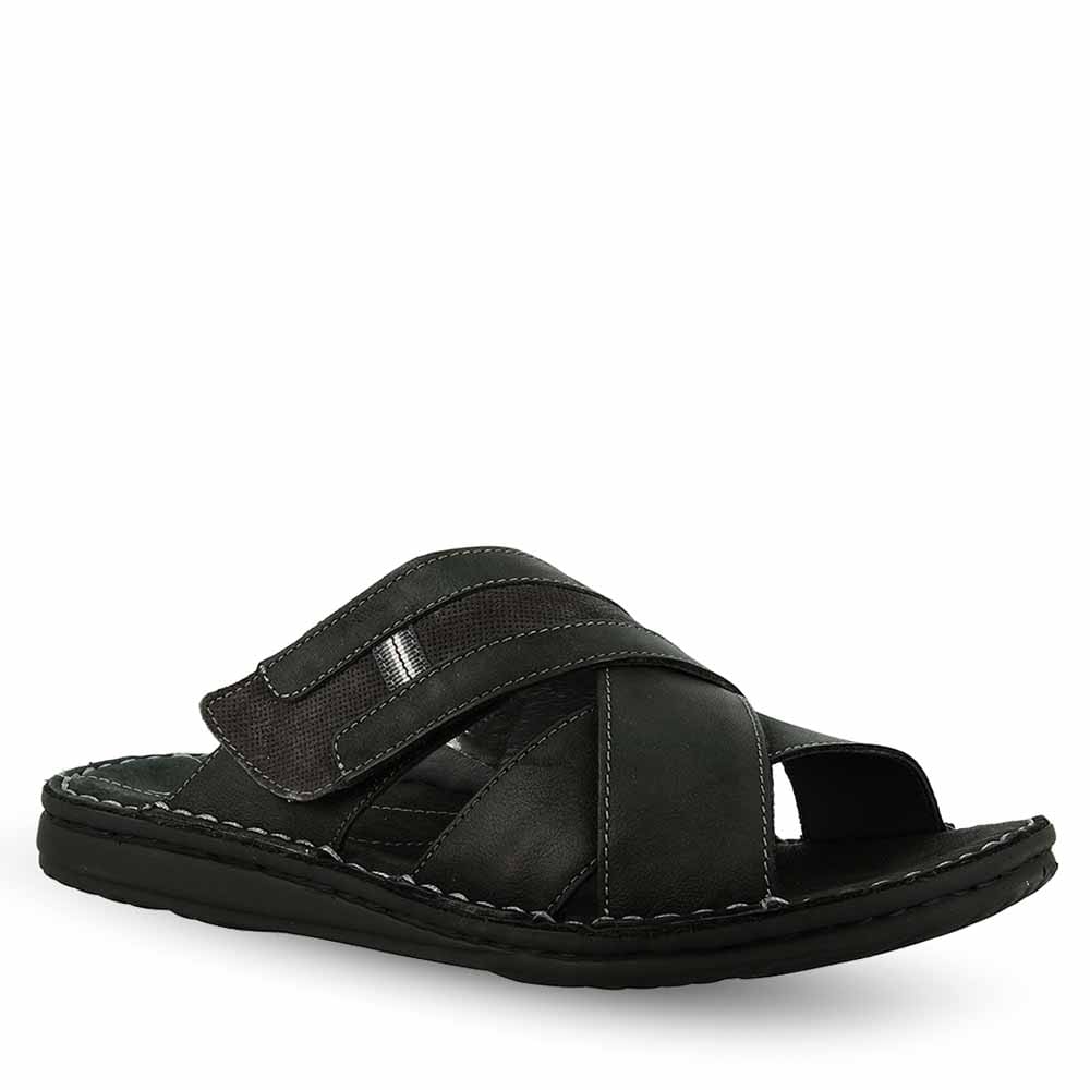 Comfortable leather sandals with crossed straps and velcro. Made from real leather. The insole is created from leather.
