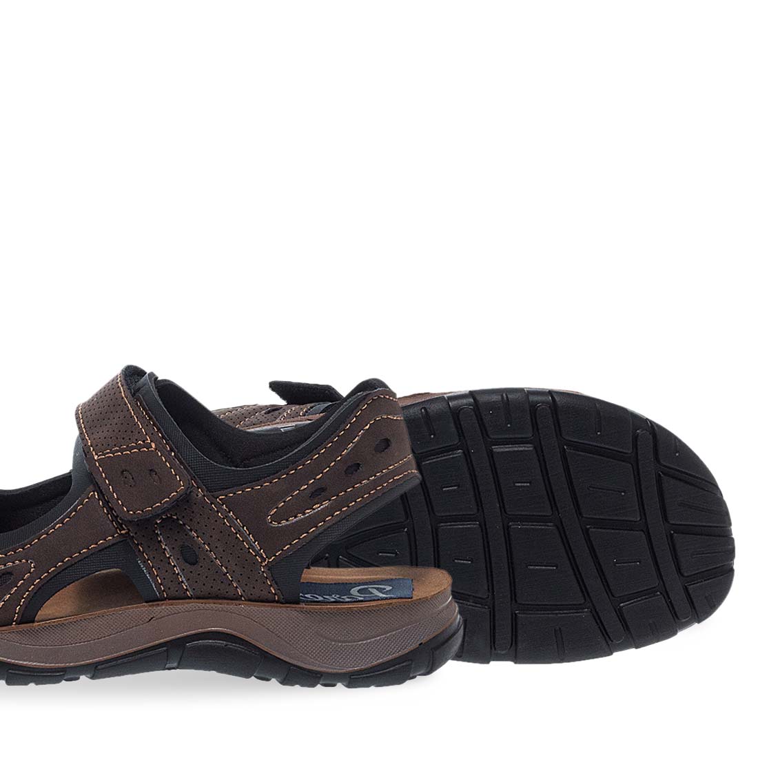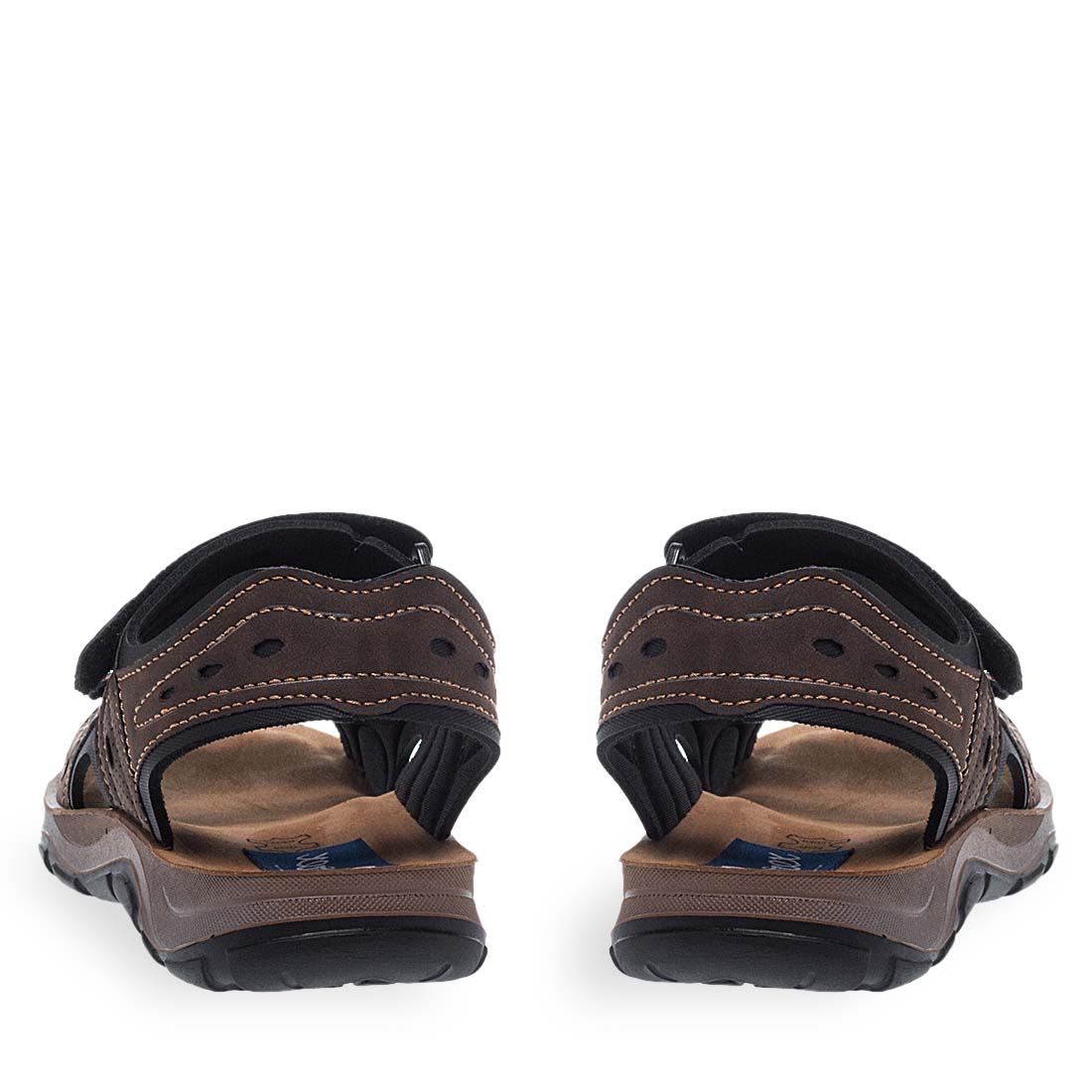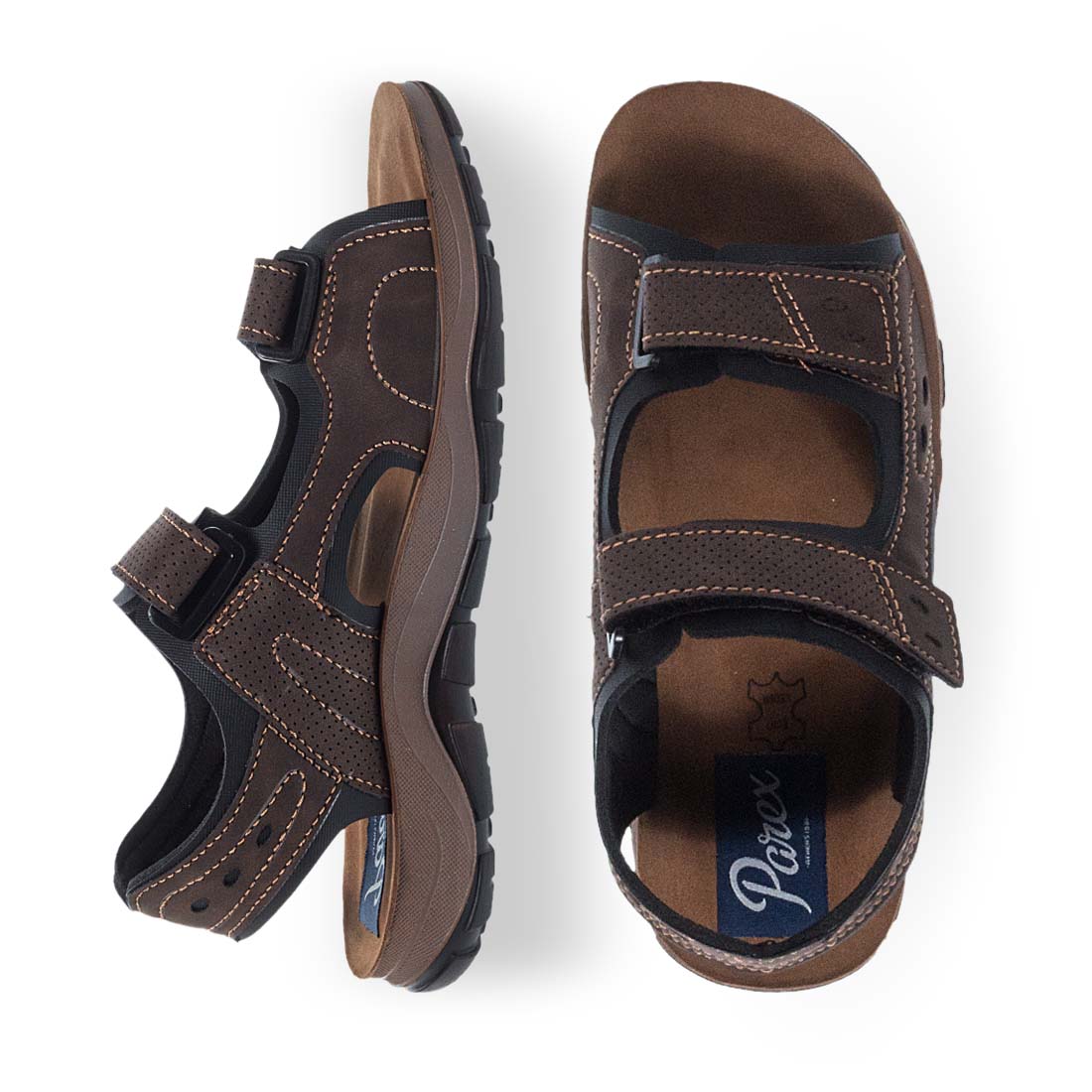 Men''s sandals by Parex. They have two straps with velcro on the upper part and bold external seams. The durable and stable sole impresses with every step. Super soft leather insole. Available in brown and black color. Relaxed fit.