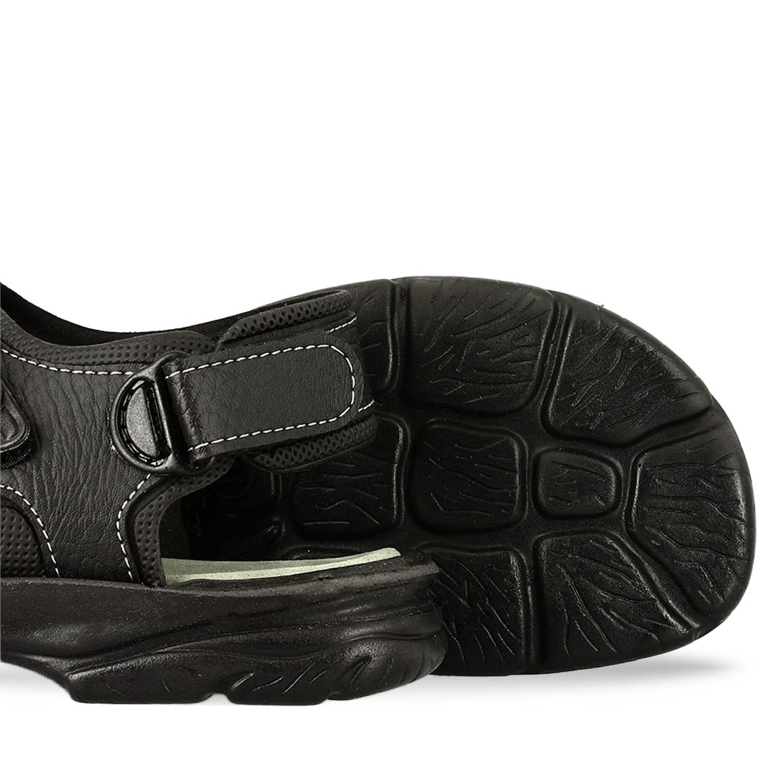 Men''s Sandals with leather look upper. Velcro strap fastening and comfortable sole with leather footbed.