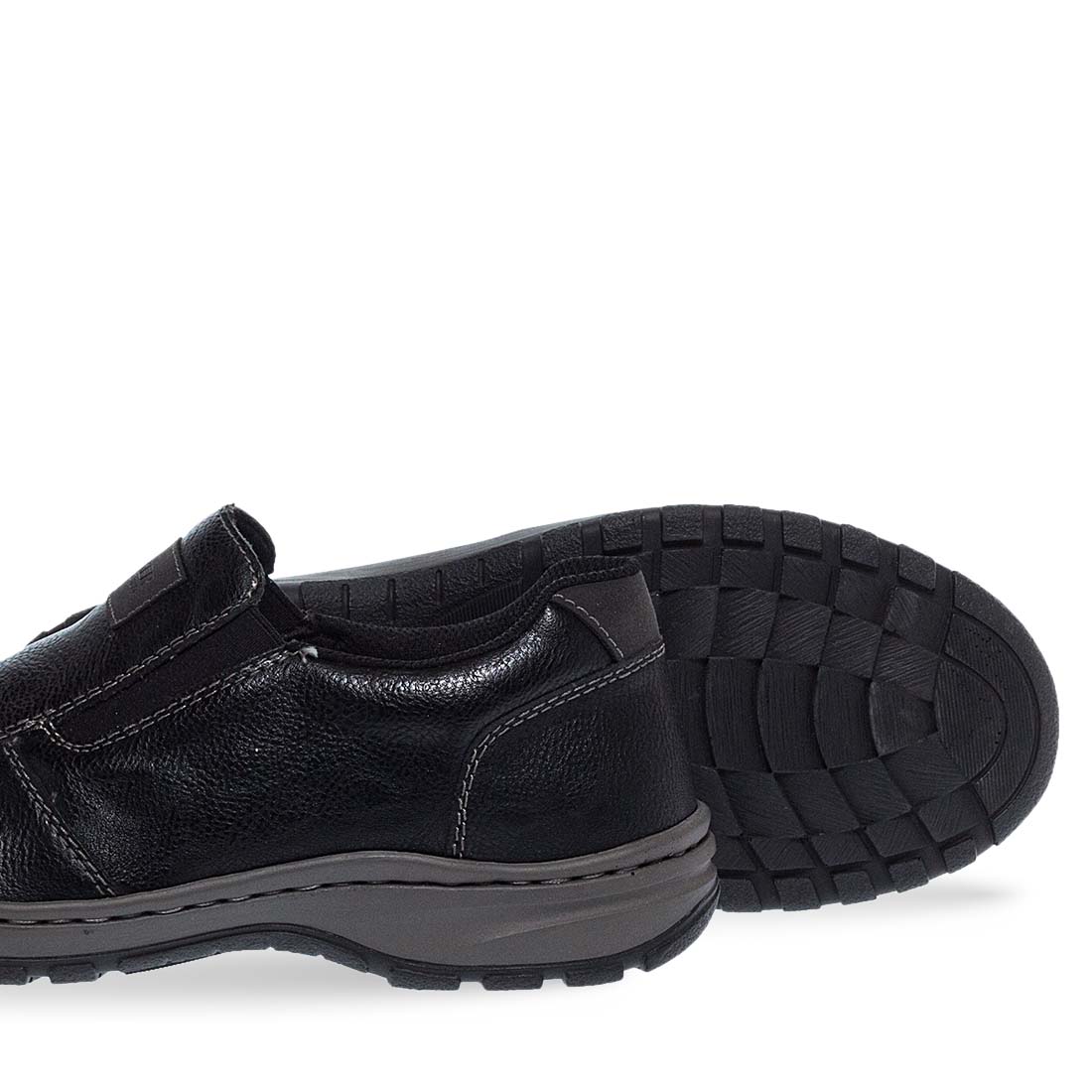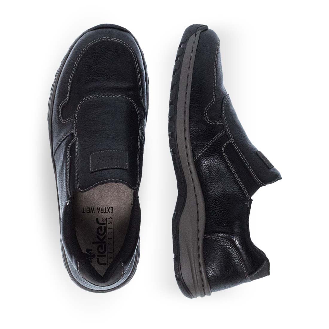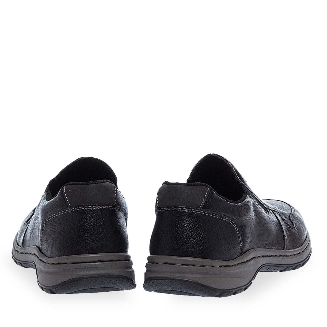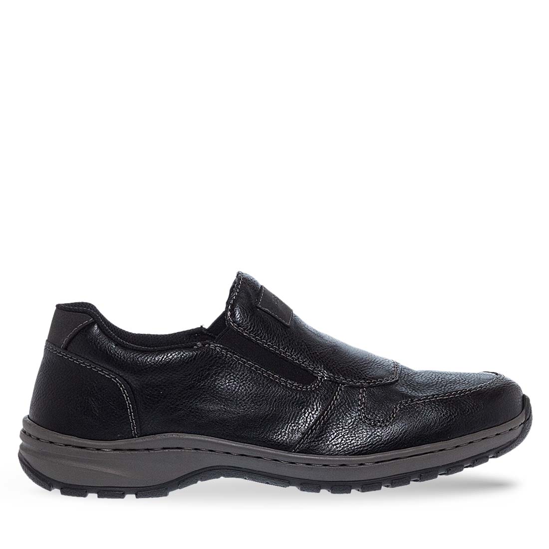 Timeless design men''''s slip on by Rieker in black color. Easy fit with elasticated panel. Anti-vibration sole and comfortable insole. Take stylish and comfortable steps with these slip on.
