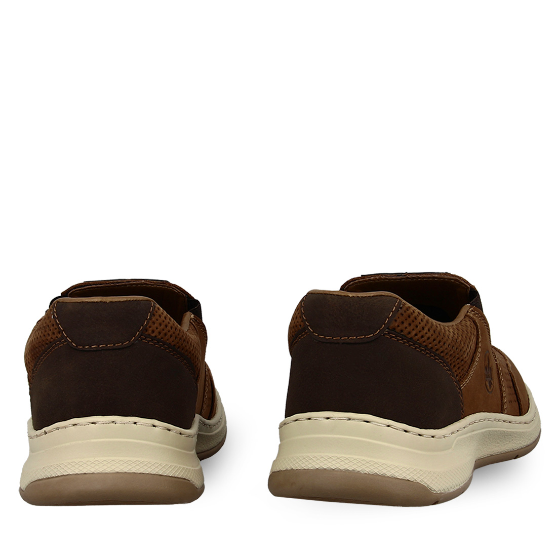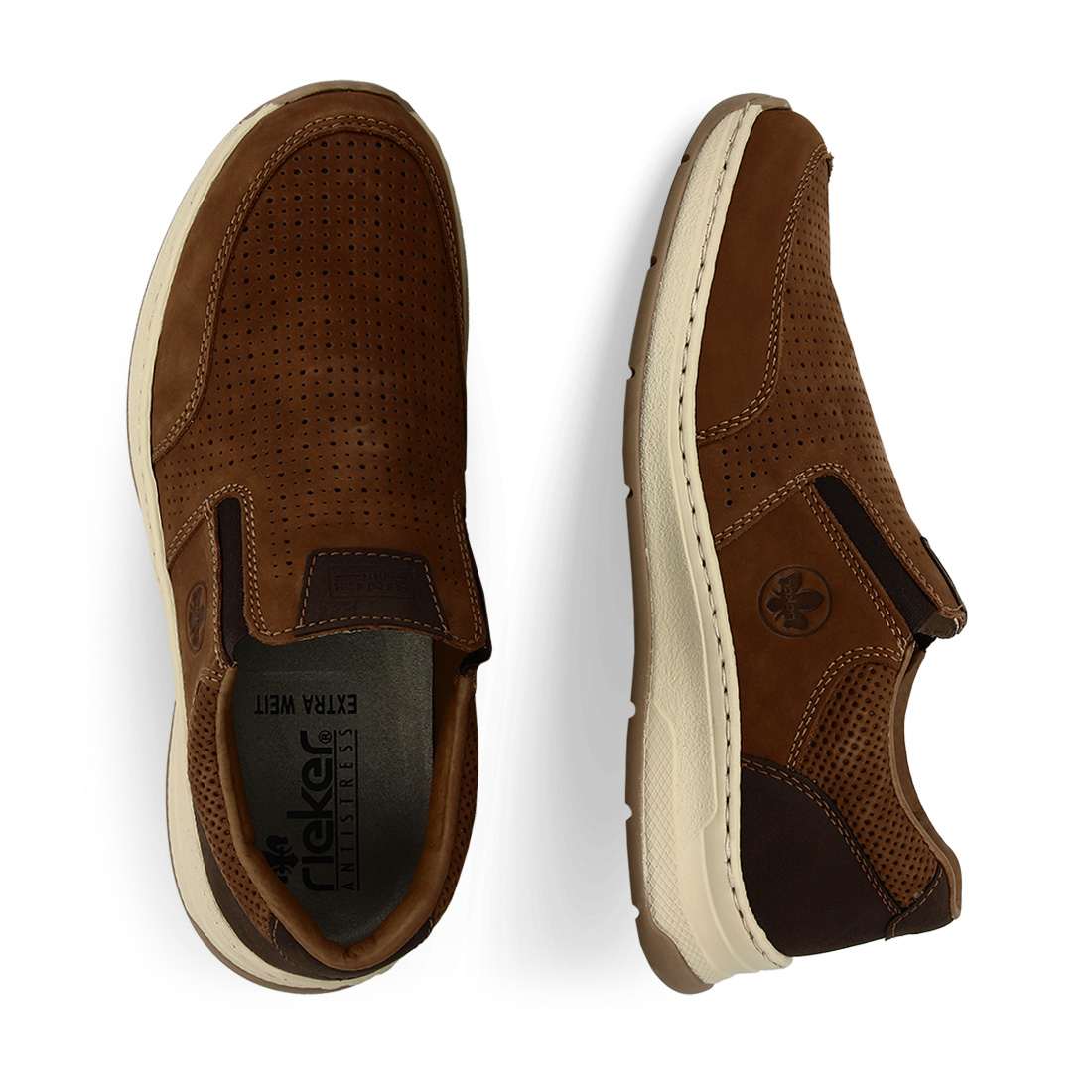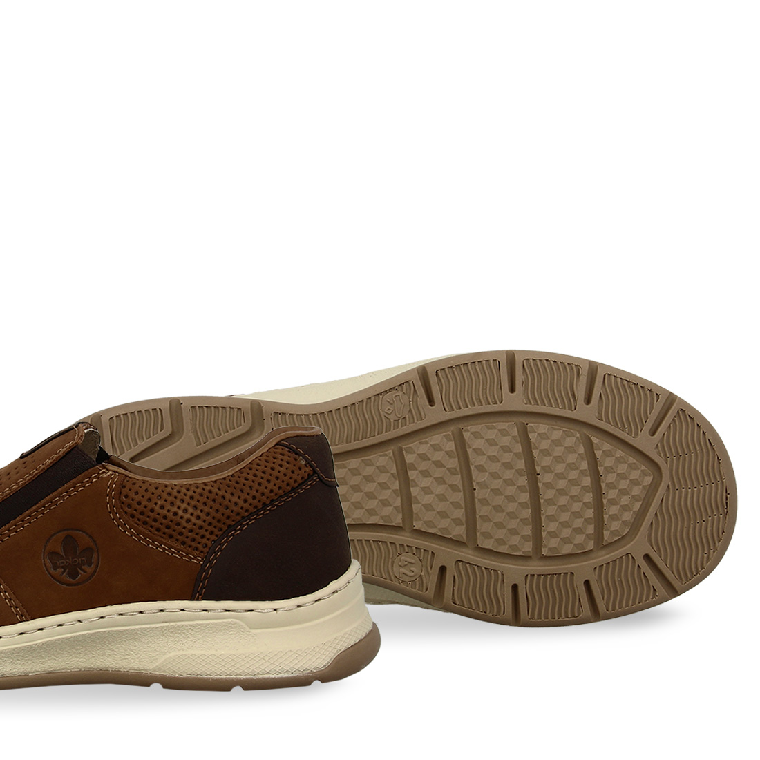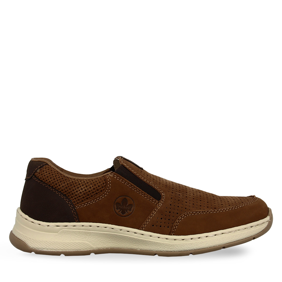 Men''s slip on Rieker. Add this timeless deign on your footwear essentials,men''s slip on by Rieker. They have elasticated panel to adapt at any type of foot. Comfortable insole and non-slip sole. Available in brown color and logo on the side. Excellent combination of materials and colors. Refresh your style with these men''s slip on by new Rieker collection.