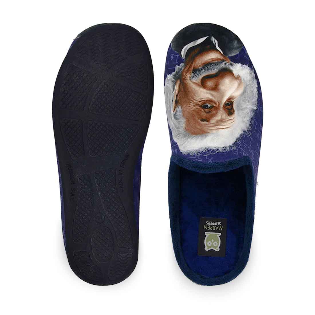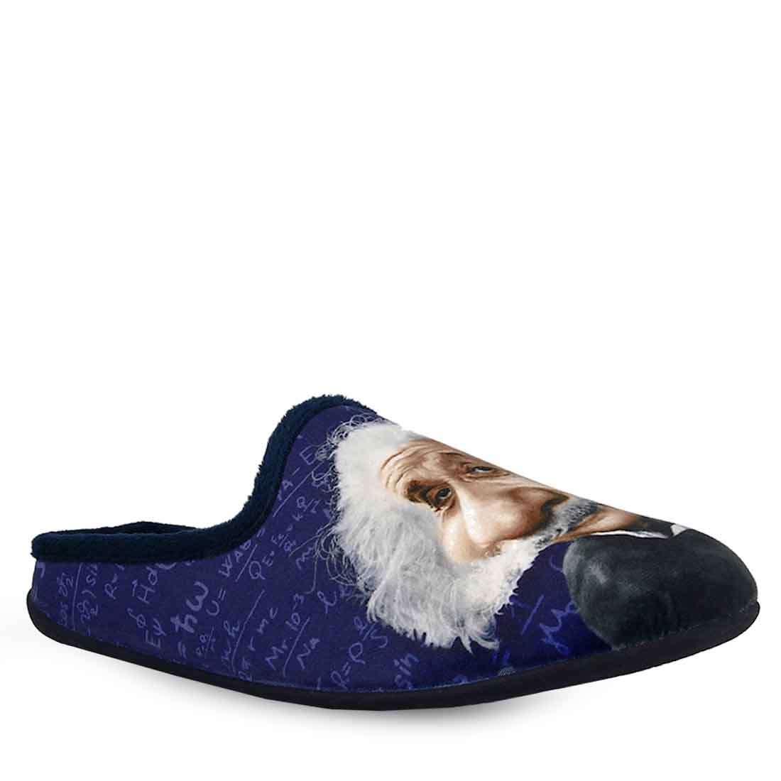 Men''s slippers by Marpen with Einstein design on the upper. Available in blue color,soft velor fabric footbed and a stable sole. Ideal choice for gift.