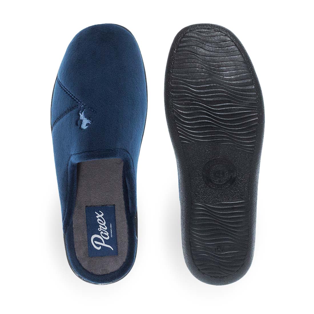 Comfortable house slippers for men by Parex. Modern design available in blue and grey color. Super soft insole. Wear yours all day without pain.