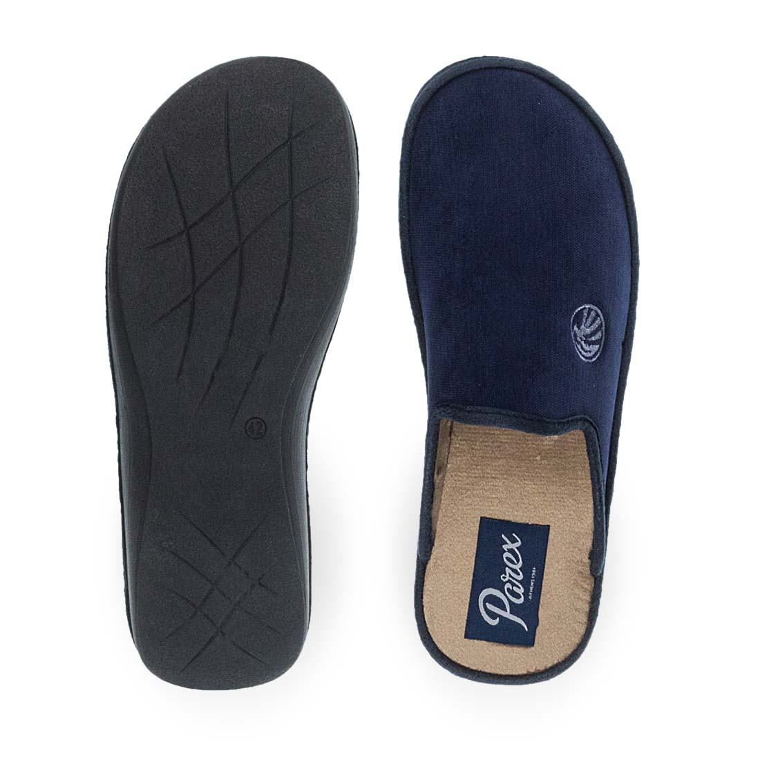 Comfortable house slippers by Parex. Non-slip sole and vey soft footbed. Wear yours all day without pain. Available in two colors.