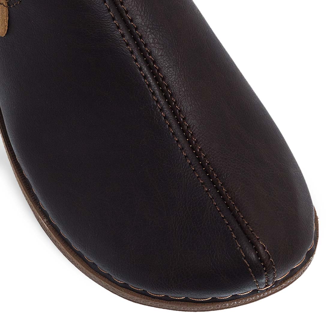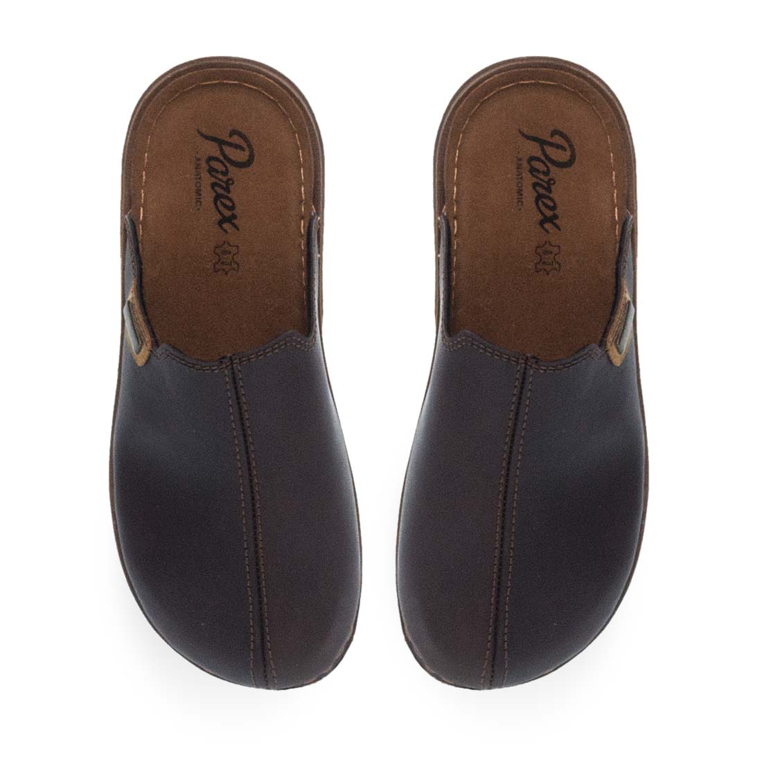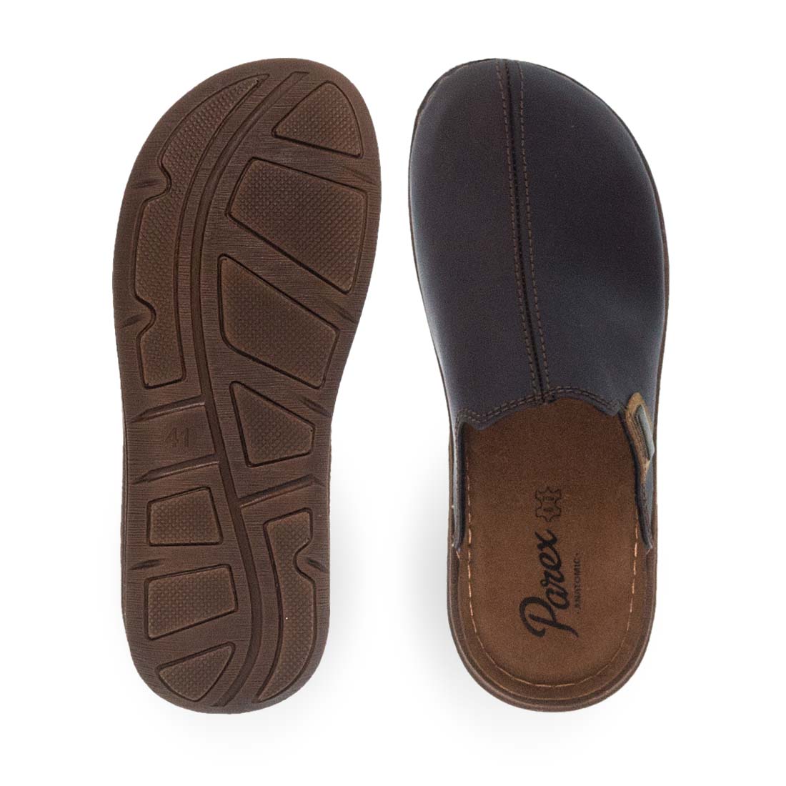 Monochrome house slippers by new Parex collection. Comfortable insole and stable non-slip sole. External seams,modern steps with comfort and perfect fit. Available in brown and black color.