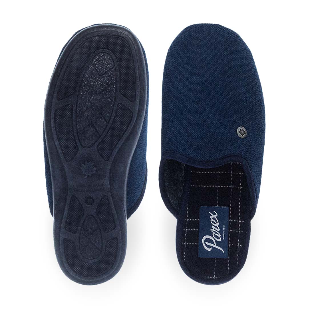 Make sure your collection includes this fashionable design house slippers for men by Parex. Comfortable insole. Durable outsole. Available in grey and blue color. Easy to fit!