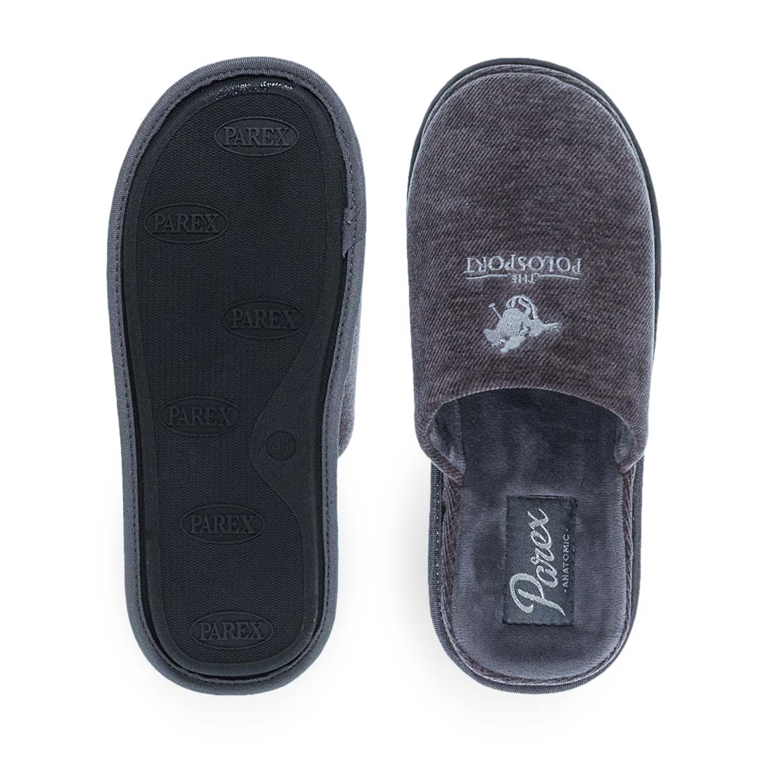 Men''s house slippers by Parex. Anatomic men’s Parex house slippers designed for all-day comfort. Featuring the classic The Polosport design in grey and navy, they provide soft cushioning and a secure fit. Perfect for relaxing at home with timeless style and signature quality.