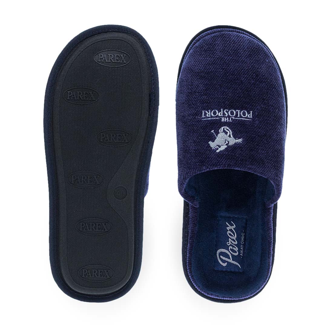 Men''s house slippers by Parex. Anatomic men’s Parex house slippers designed for all-day comfort. Featuring the classic The Polosport design in grey and navy, they provide soft cushioning and a secure fit. Perfect for relaxing at home with timeless style and signature quality.