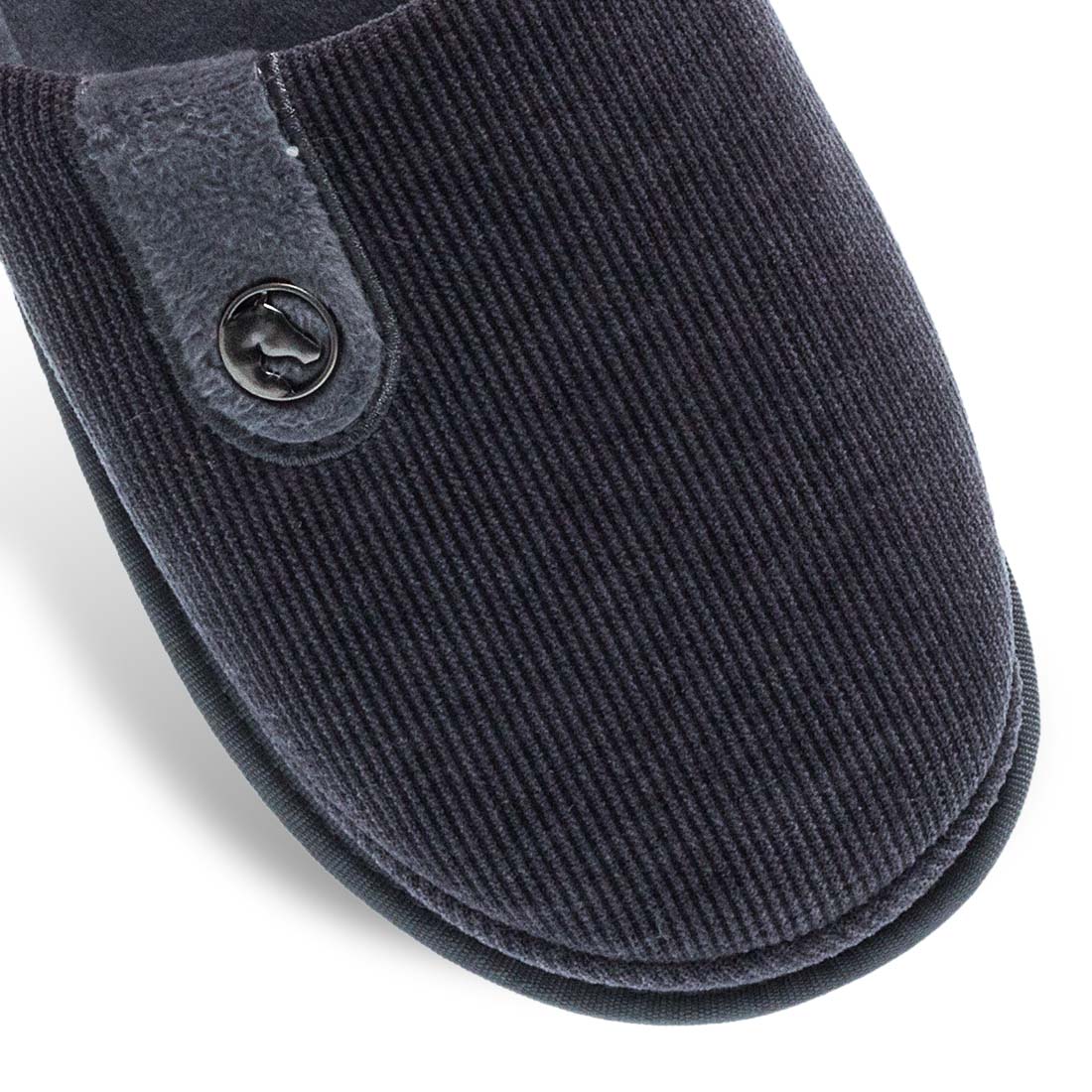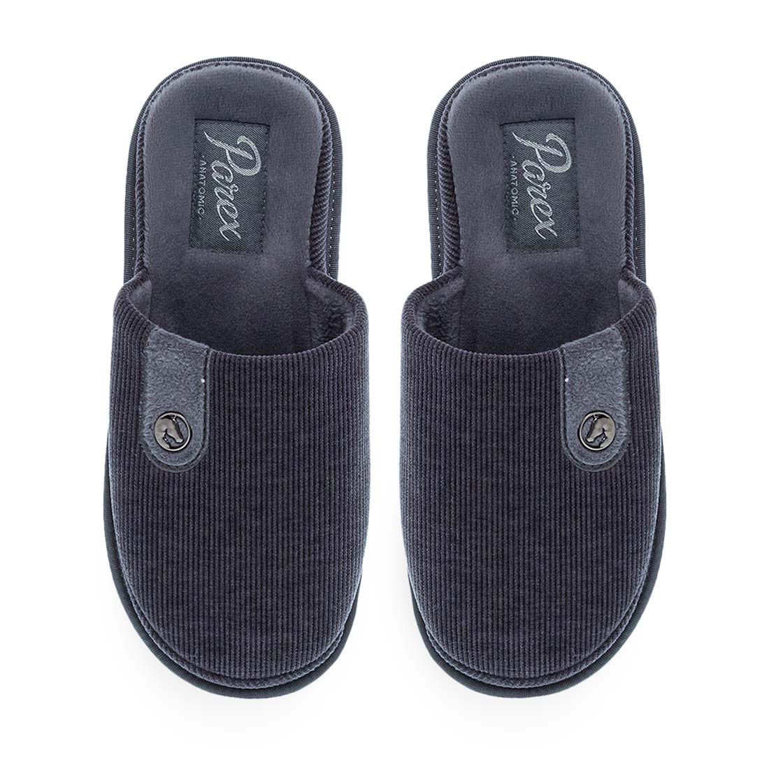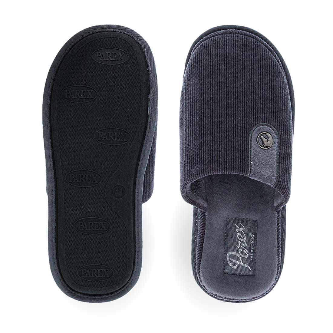 Men''s house slippers by Parex. Men’s slippers by Parex in black and grey, minimal design with side button. Soft texture and anatomical insole for everyday comfort.