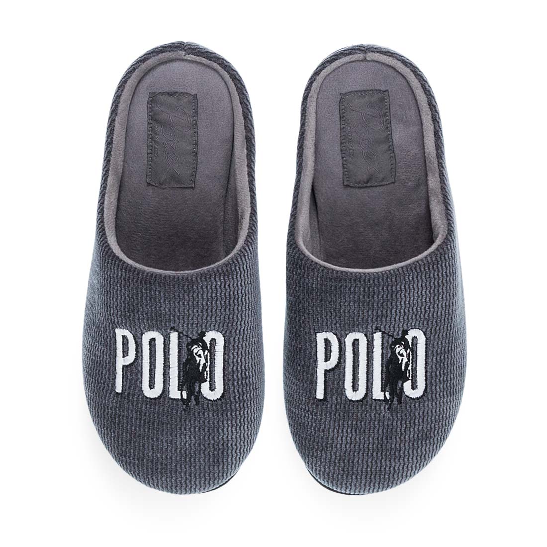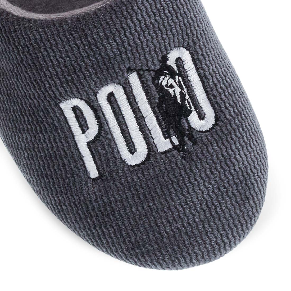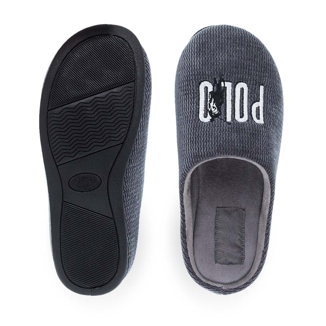Men''s house slippers by Parex. Men’s Parex slippers in dark grey and navy blue color with POLO embroidery. Elegant, warm, and durable.