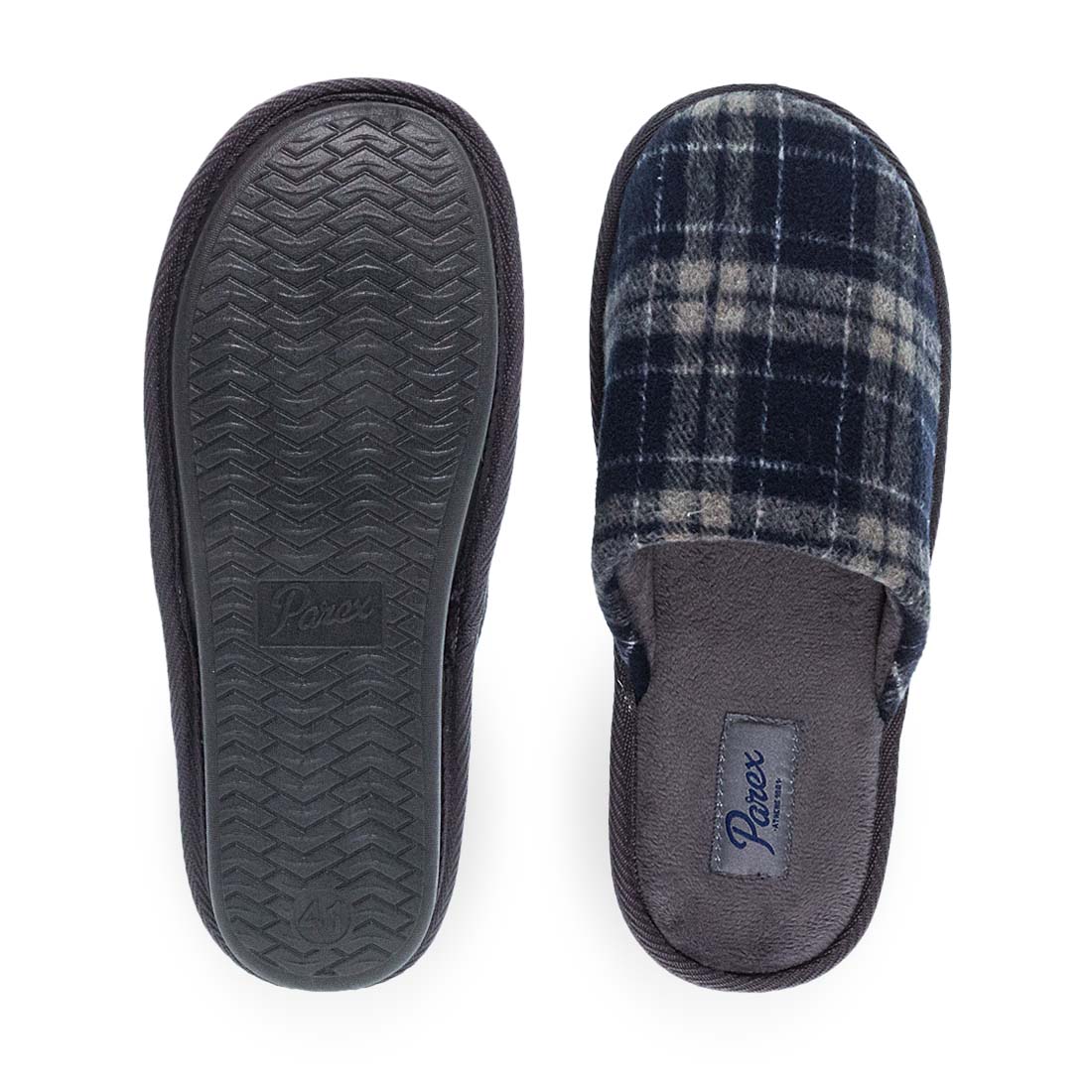 Men''s house slippers by Parex. Men’s Parex slippers with plaid pattern and soft lining. Perfect for home comfort and style.
