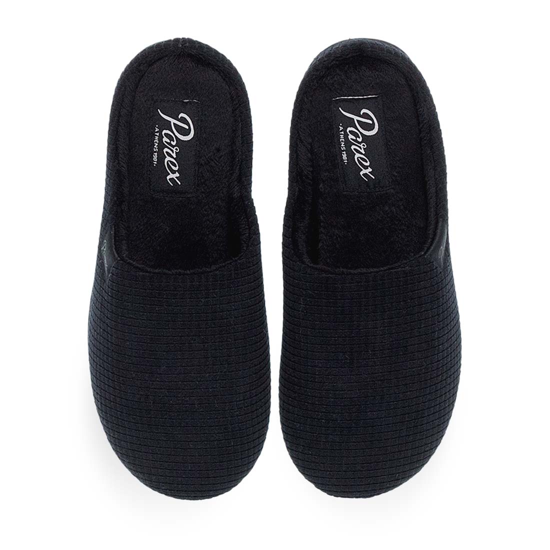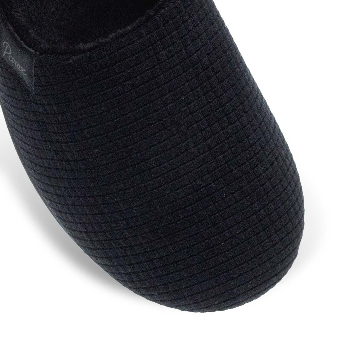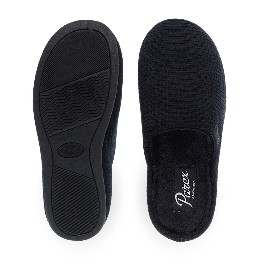 Men''s house slippers by Parex. Men’s Parex slippers in black and navy color with checkered texture. Warm lining and minimal aesthetic.