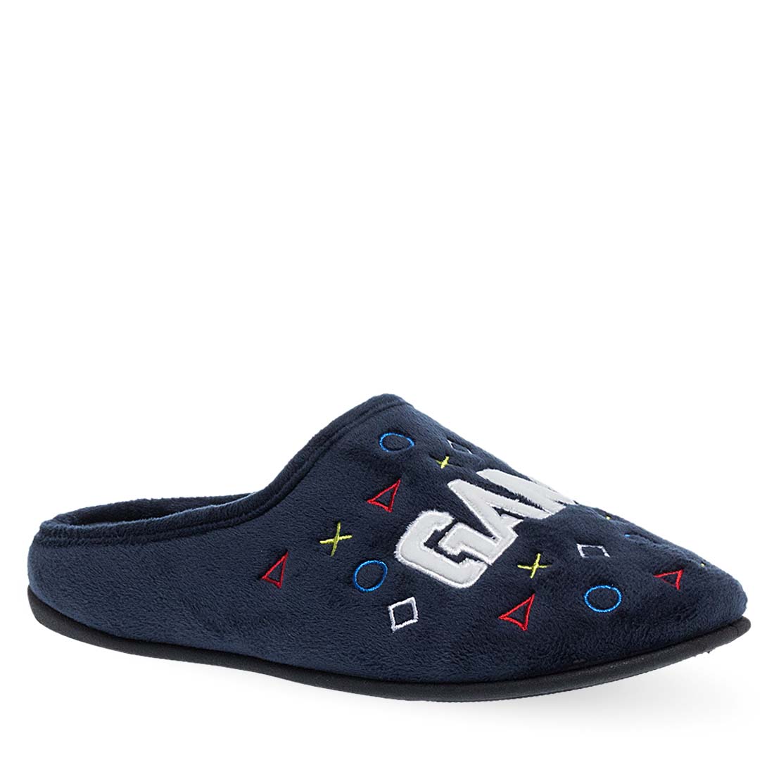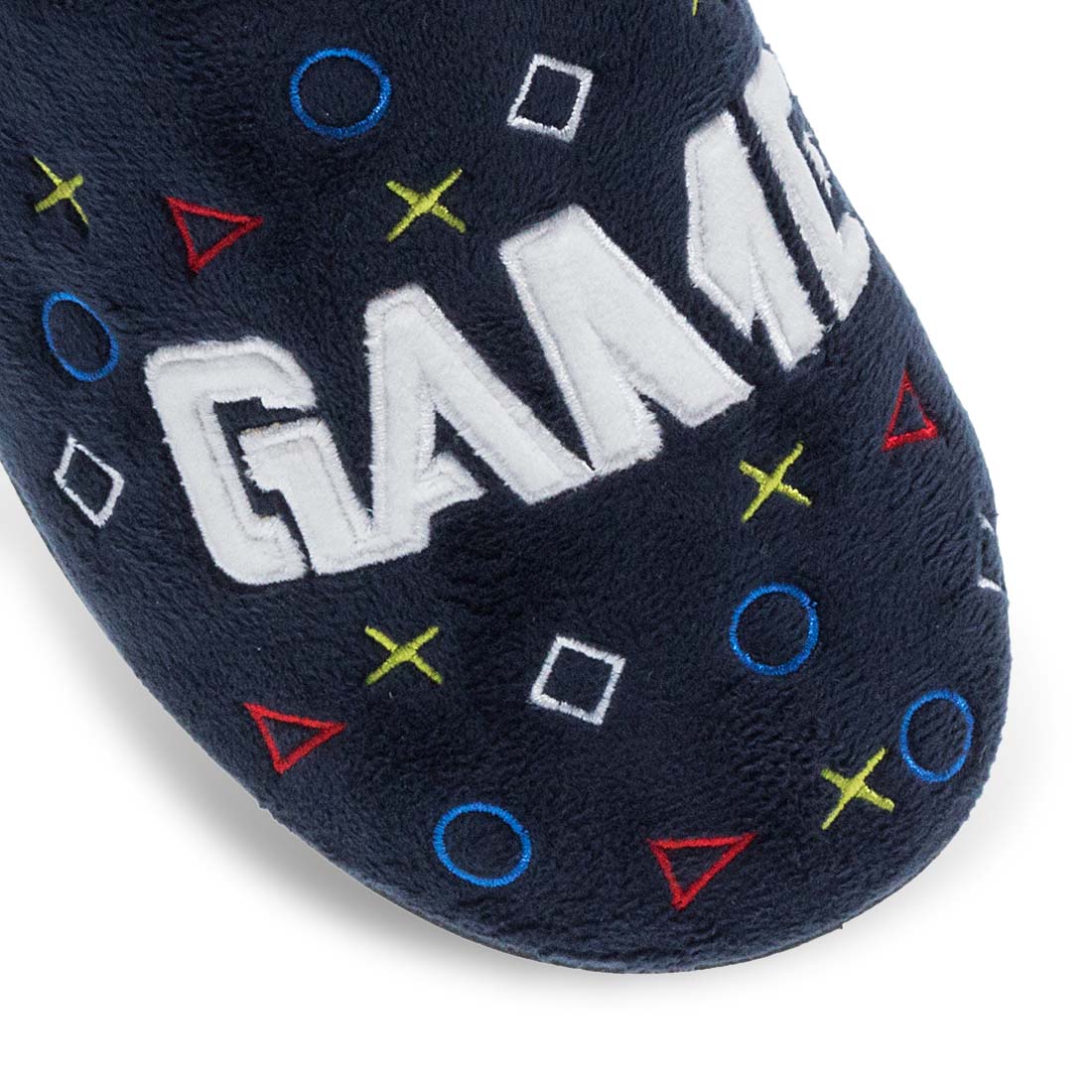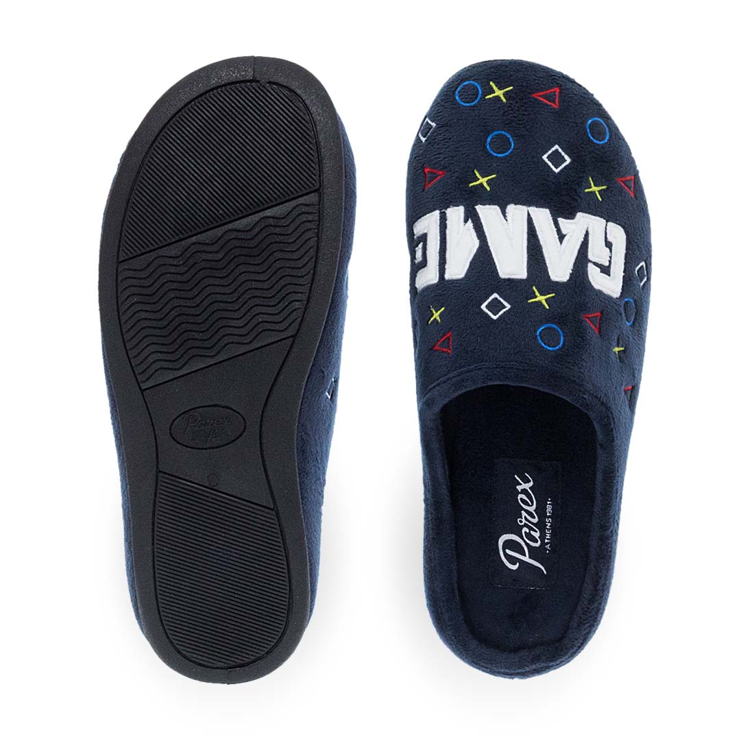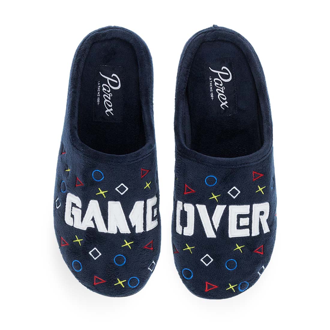 Men''s house slippers by Parex. Men’s Parex slippers in black and navy blue color with “Game Over” print. Perfect for gamers and relaxed home moments.