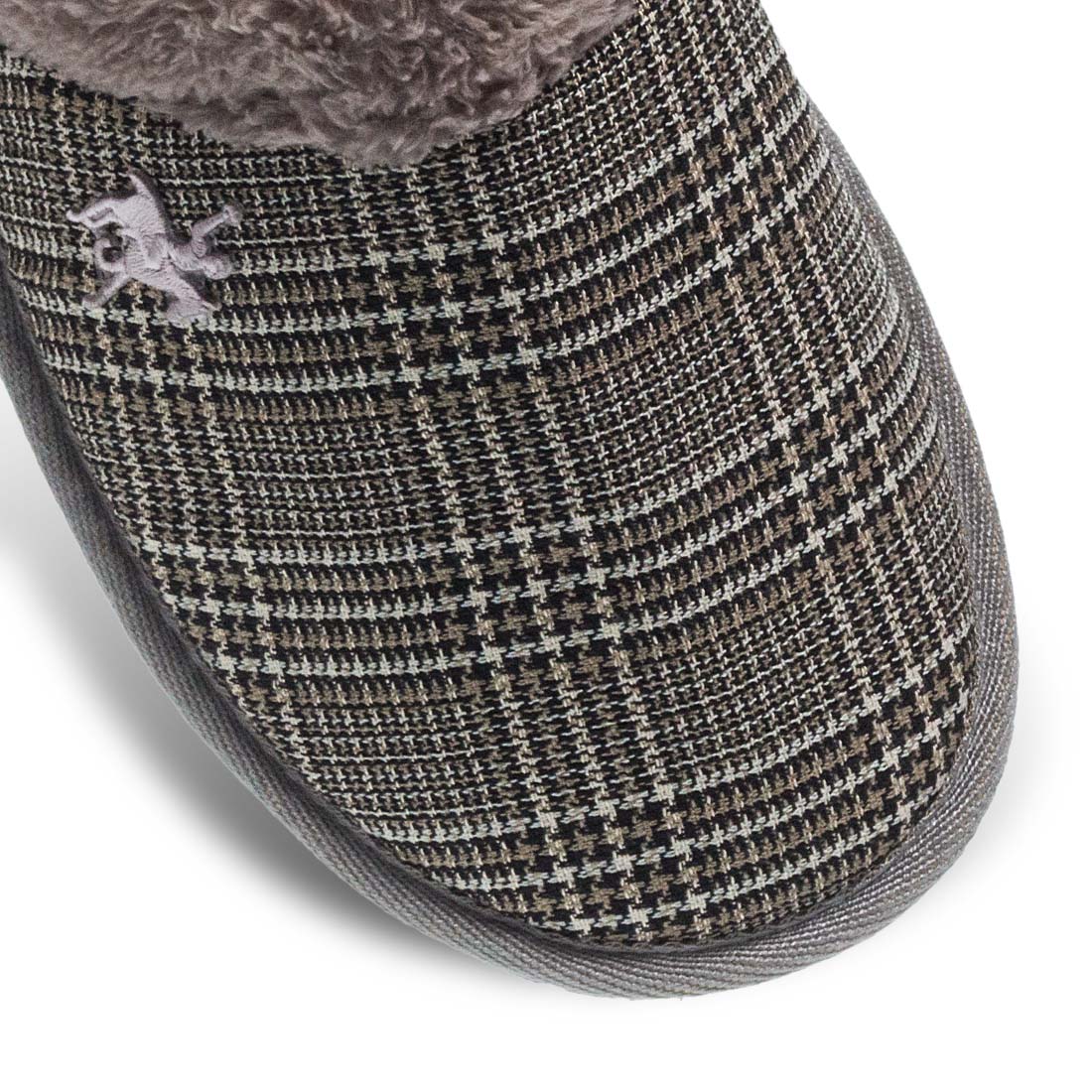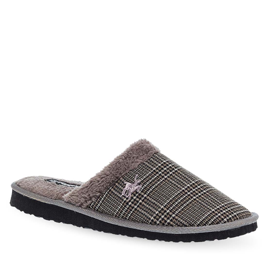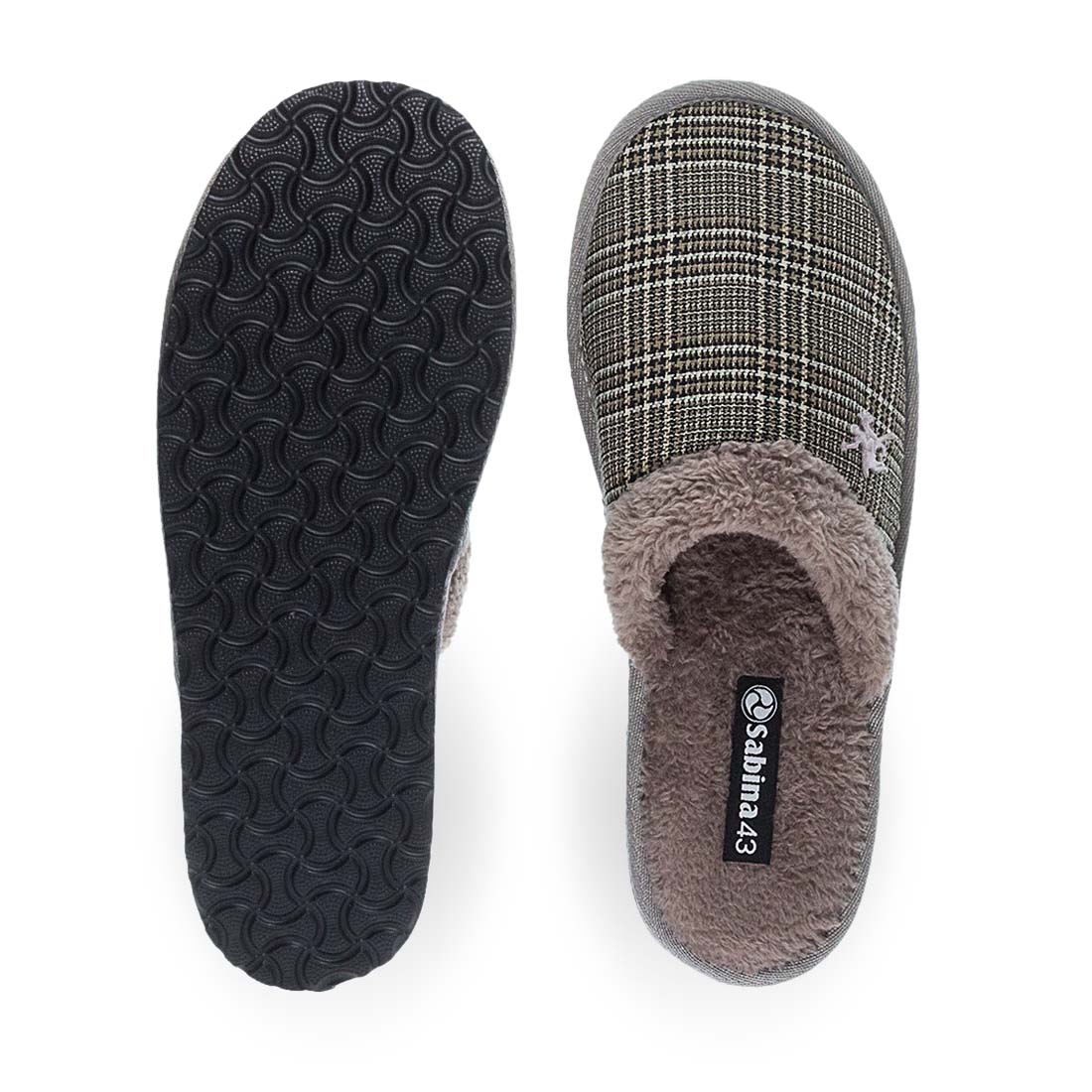 Comfortable house slippers by brand Sabina. Plaid fabric design on the upper. Comfortable and durable sole. Synthetic fur. Easy to fit.