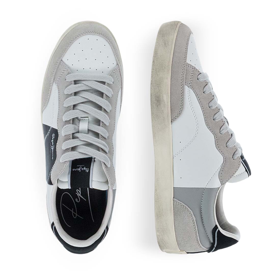 Men''s leather sneakers by Pepe Jeans. Men’s Pepe Jeans sneakers crafted from leather in white-grey tones with suede details. Modern design with a vintage twist.