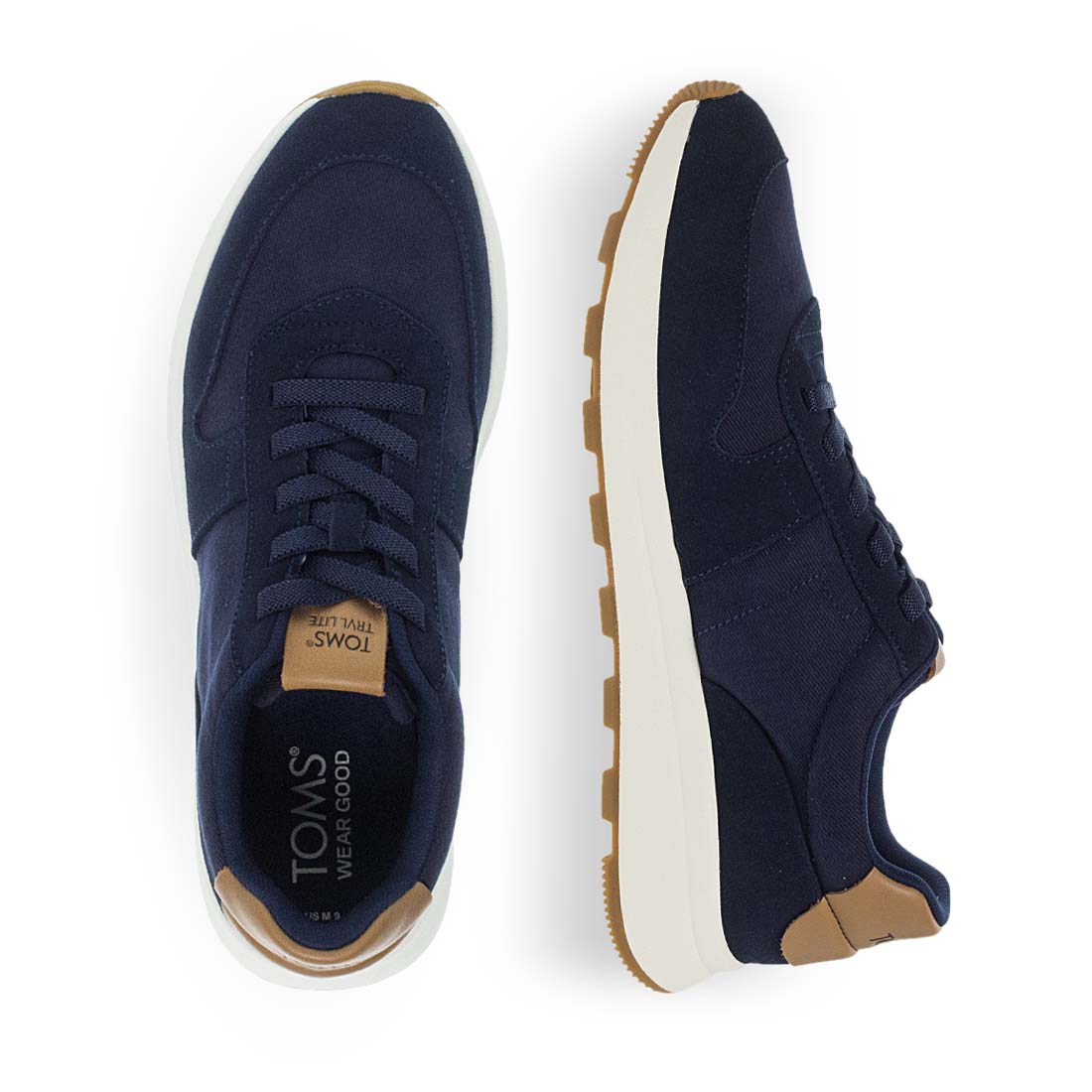 Blue leather sneakers Toms for men. Lace up design. Fabric lining. Take stylish and comfortable steps in these sneakers. Durable outsole.