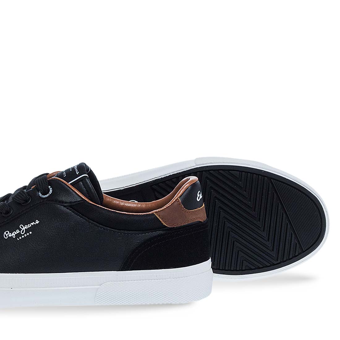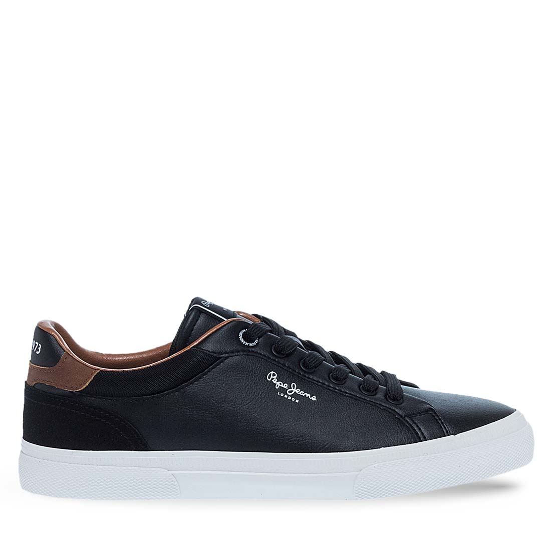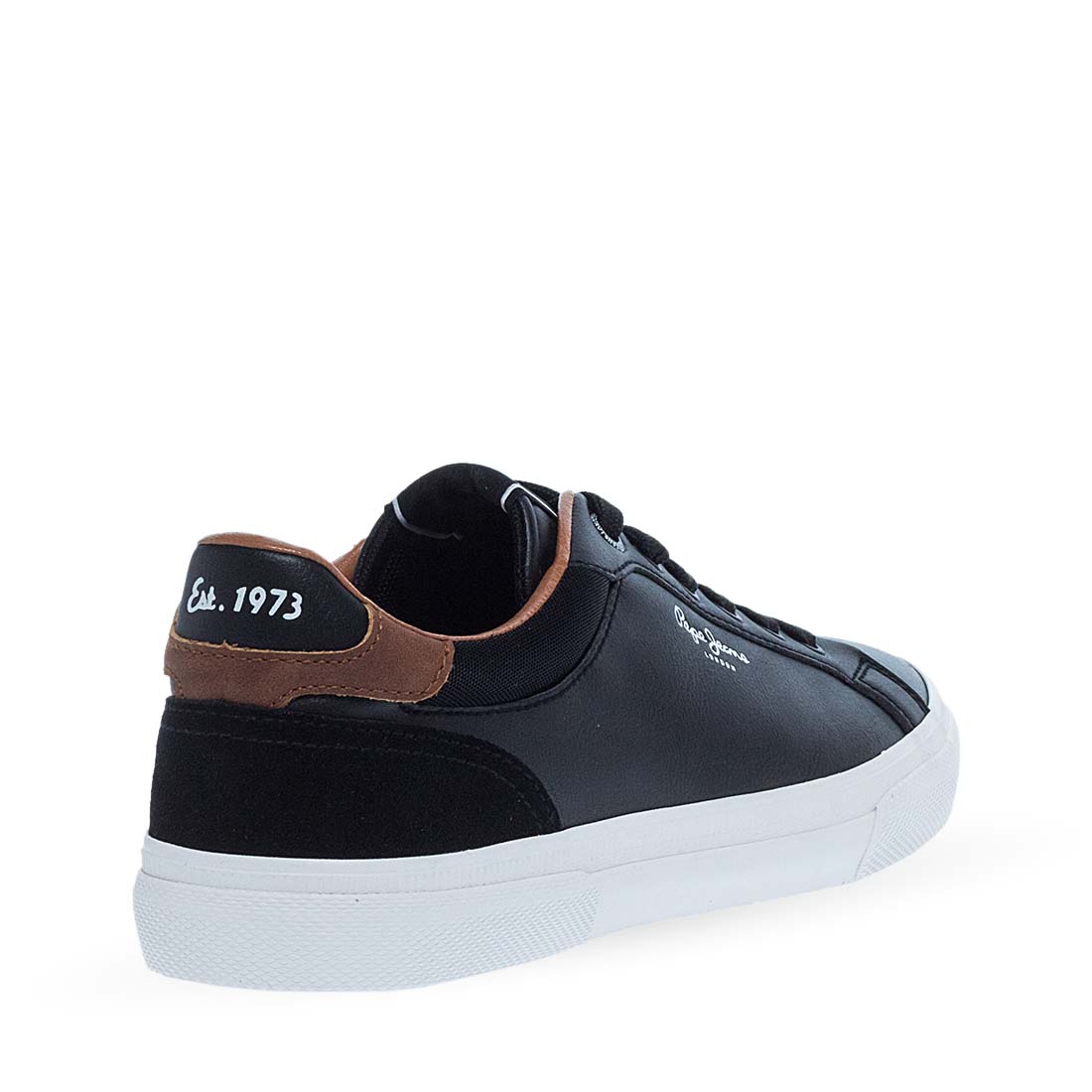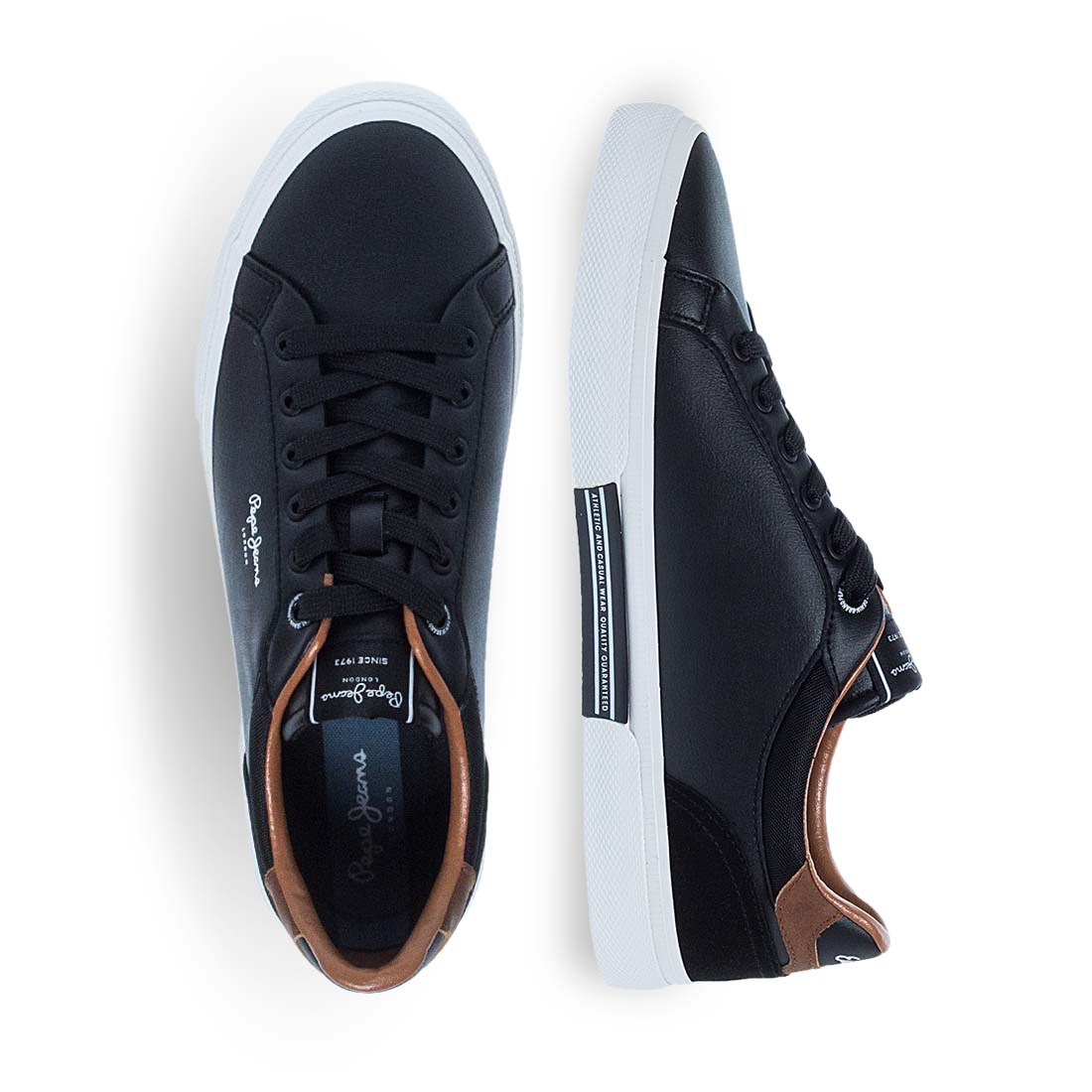 Upgrade your look with these casual sneakers for men by Pepe Jeans. Available in black color with white stable sole and brown detail on the back. Lace up design for easy application. Classic design and soft footbed for comfortable steps all day.