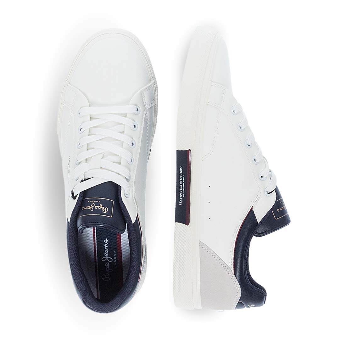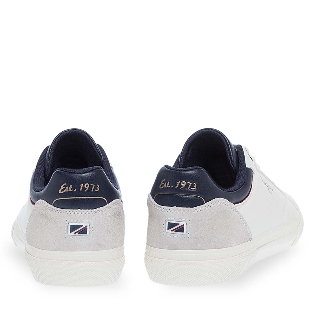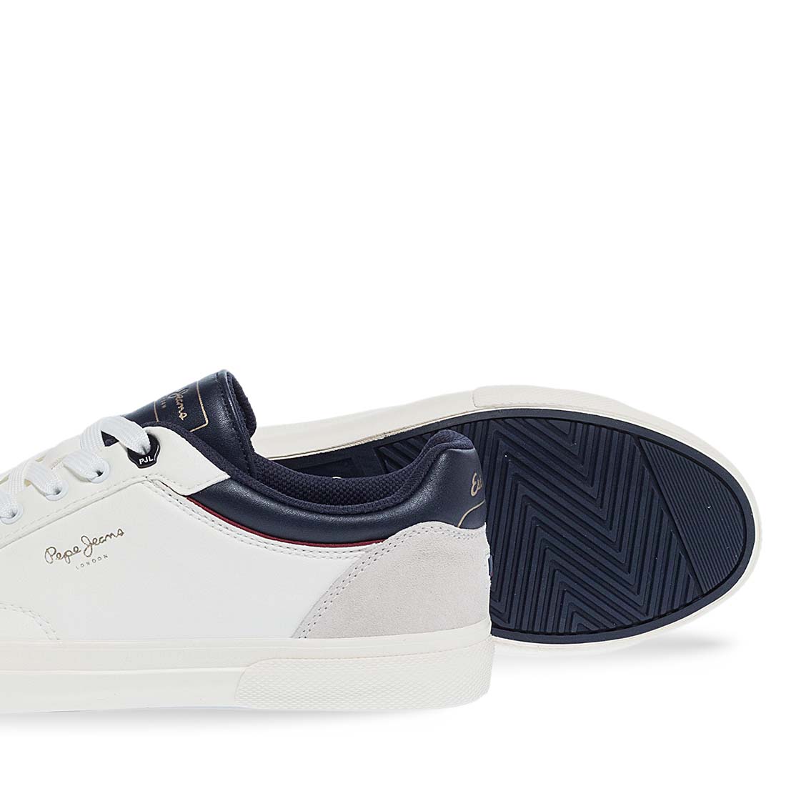 Wear these sneakers by Pepe Jeans all day. A casual design in white color with blue details. Lace up fastening. Brands logo on side and back.