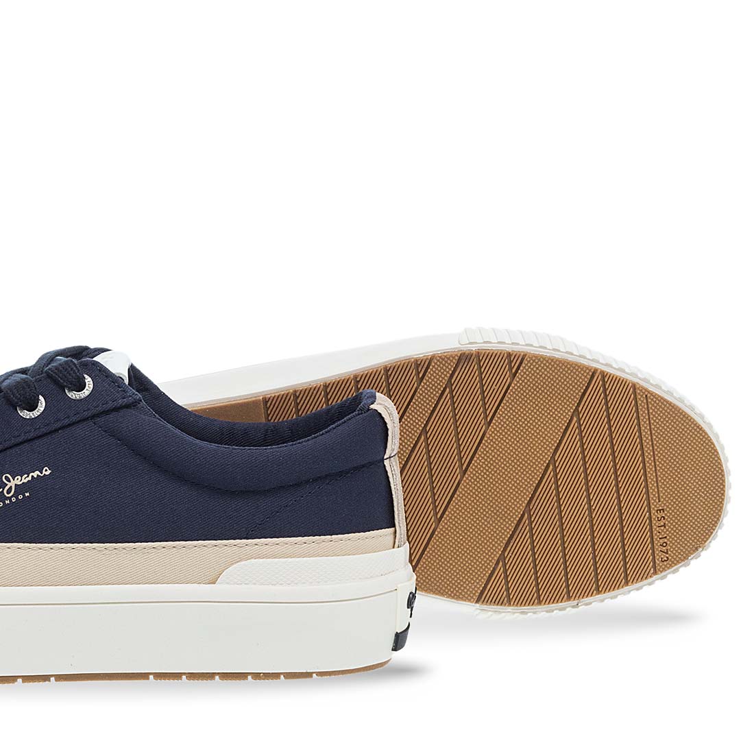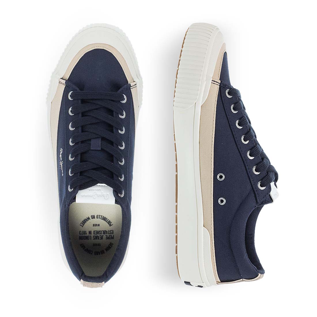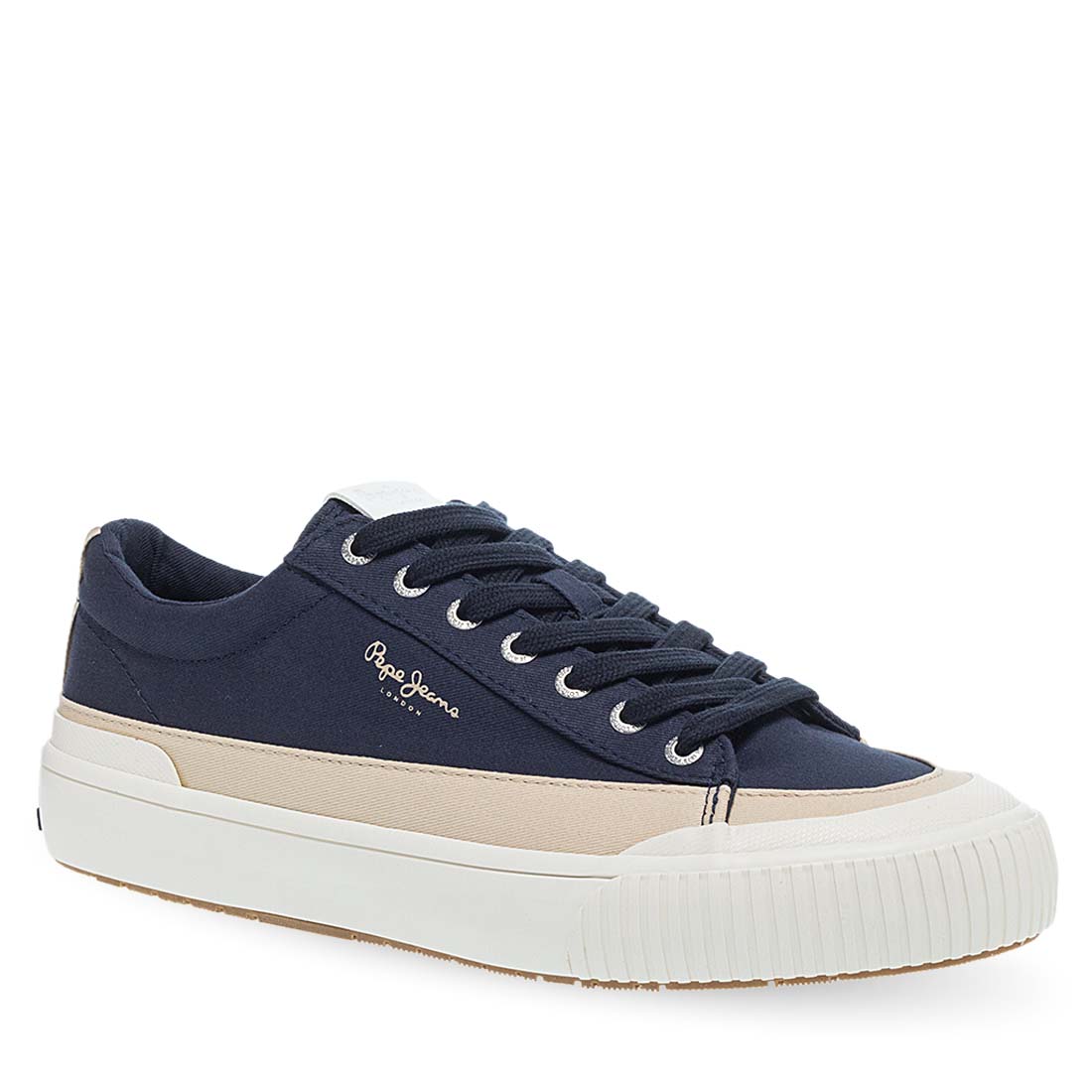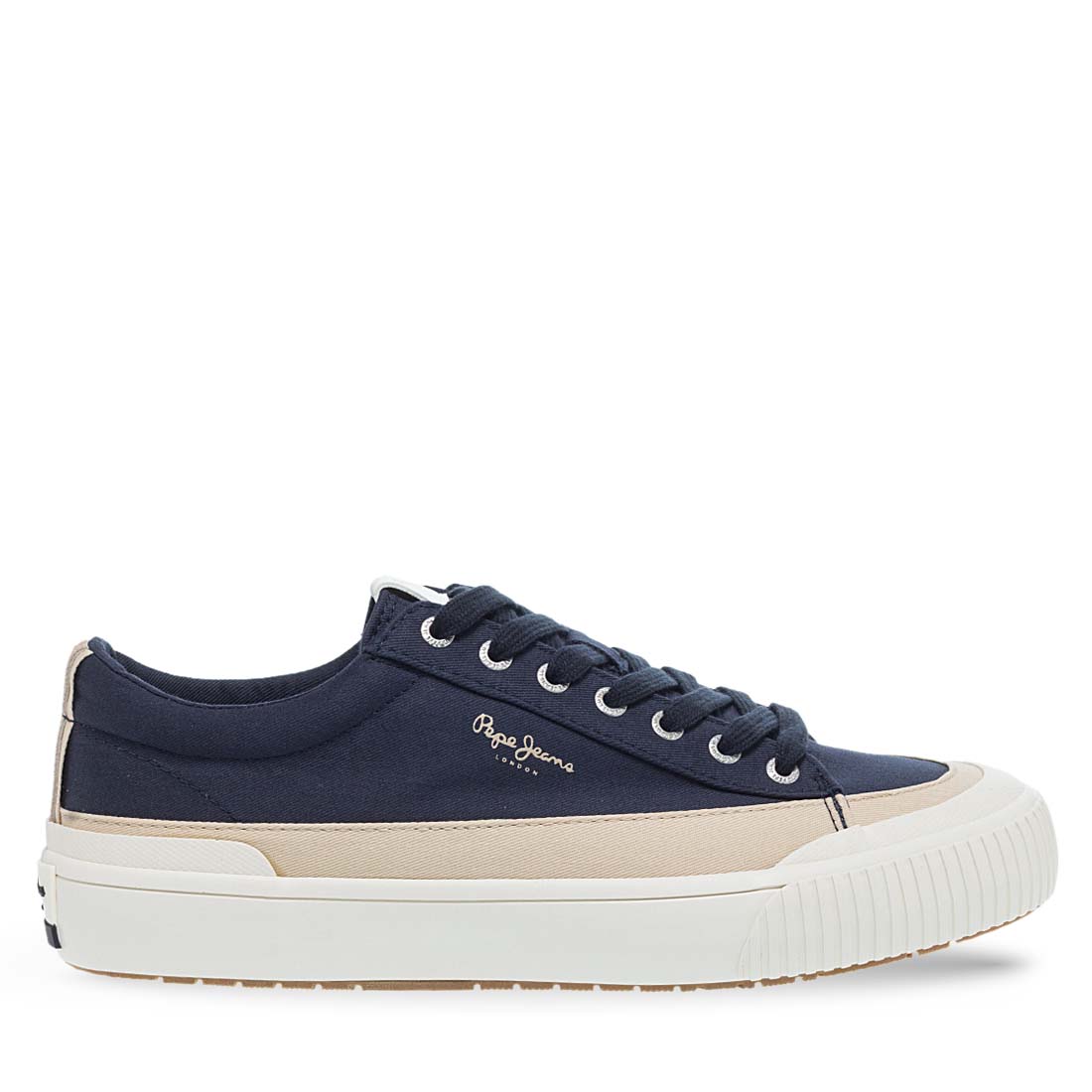 Blue sneakers Pepe Jeans for men. A stylish lace up design with side logo. Soft footbed. White sole in contrast. Fabric lining. A good mix of comfort and style.