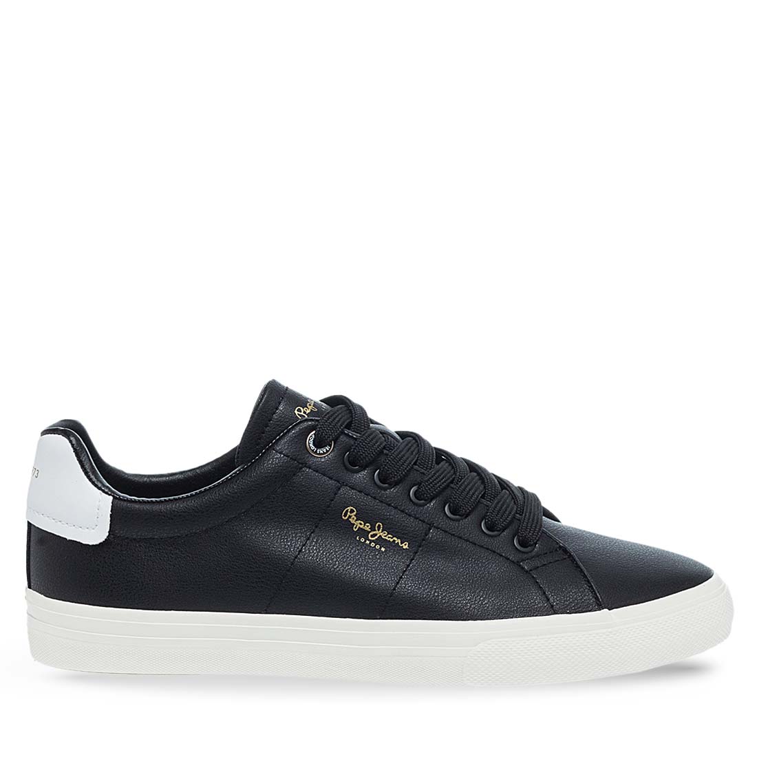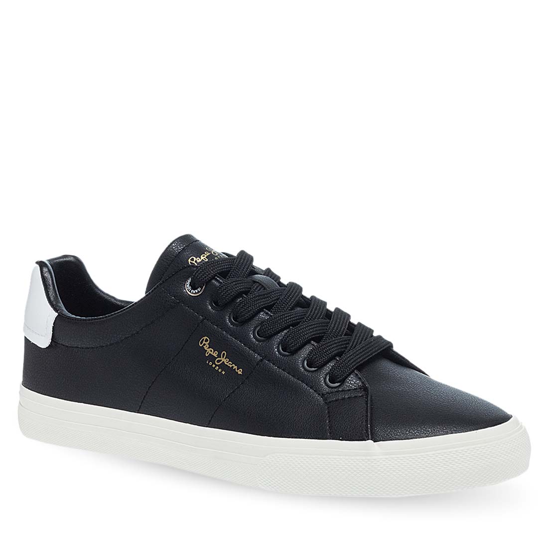 Black sneakers Pepe Jeans for men. They have an extremely soft leather insole and a white firm sole. For those of you who love classic and modern, choose these sneakers . Lace up closure.