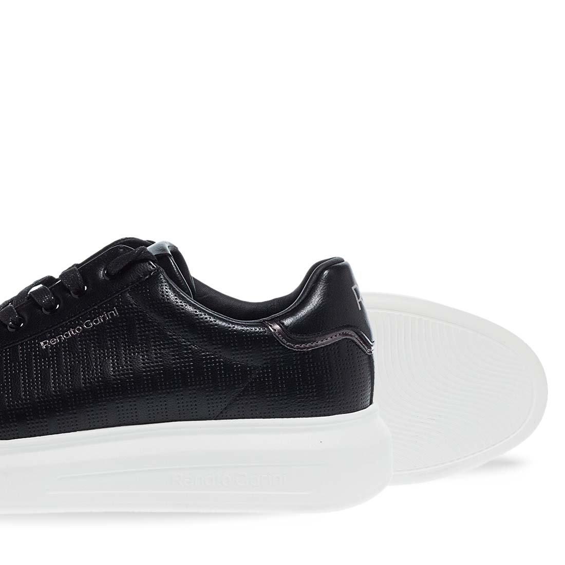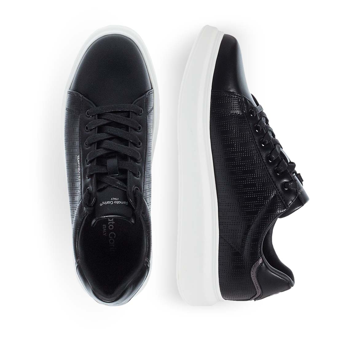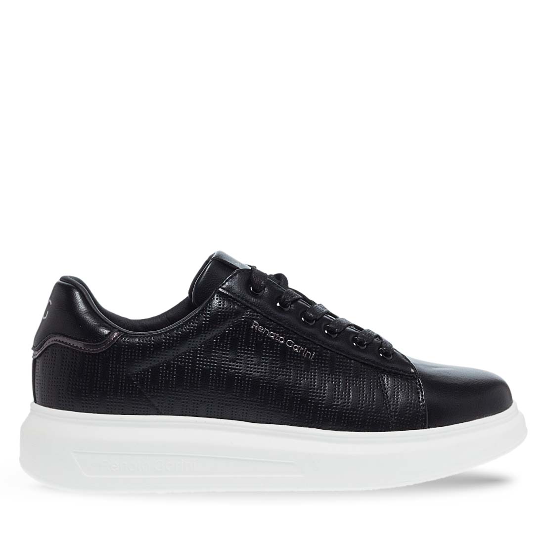 Modern sneakers for men by brand Renato Garini. Lace up fastening. Available in black color. Soft insole and durable outsole. They can keep your feet more comfortable. Made of faux leather. Timeless sneakers by Renato Garini.