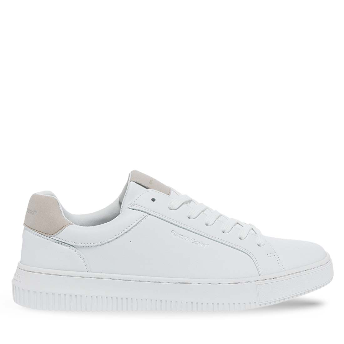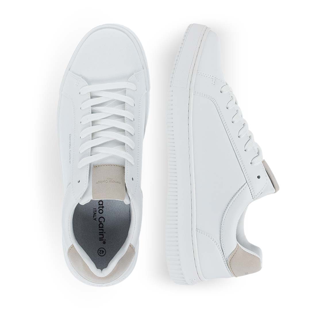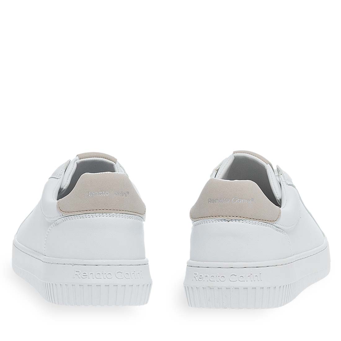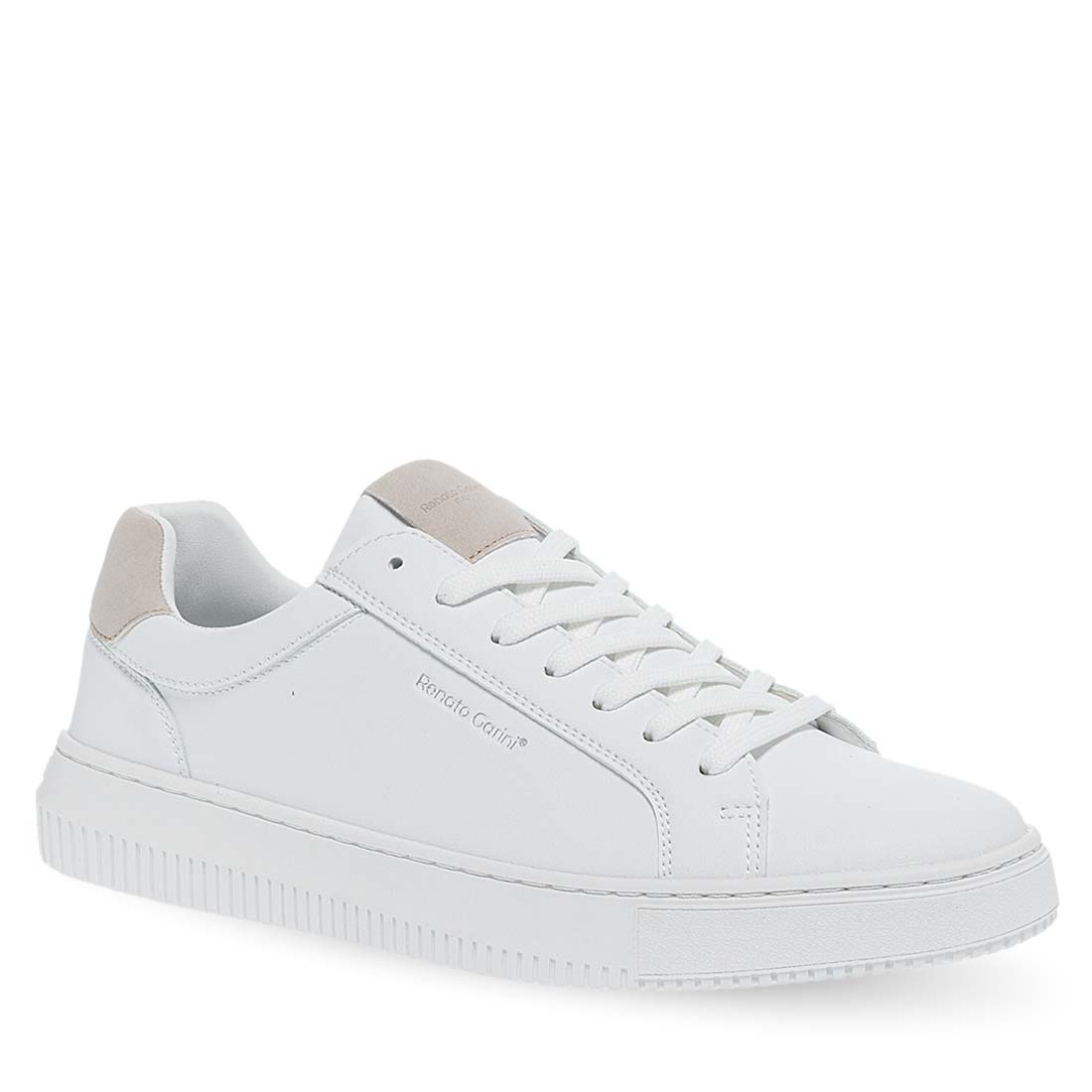 White modern sneakers by Renato Garini for men. Add to your collection these timeless men''s sneakers by Renato Garini summer collection. They have a very soft footbed for comfortable and stylish steps, while the flat white and stable non-slip sole stands out. Lace-up detail for easy fit on any type of foot. Suitable to wear day to night.