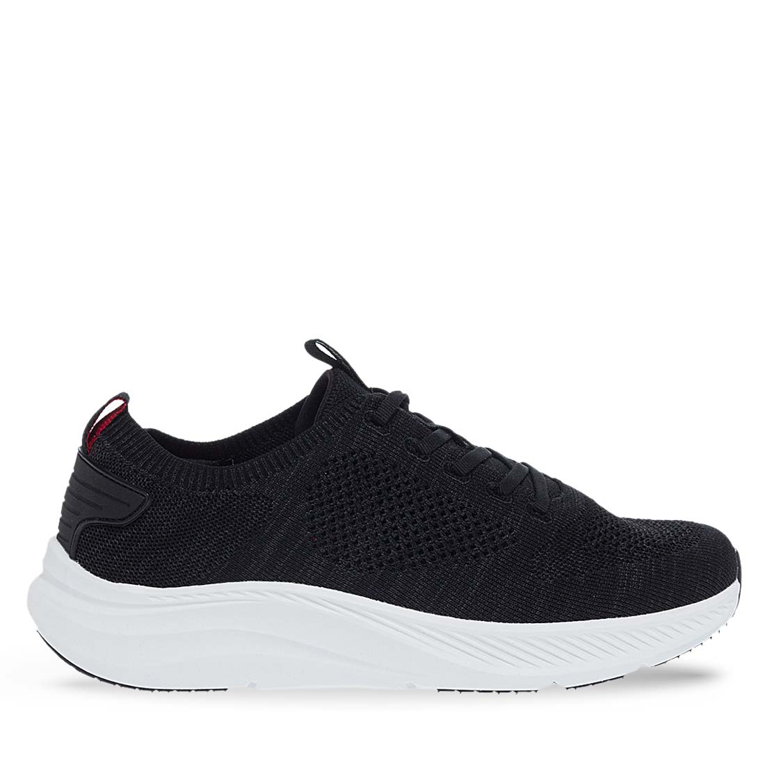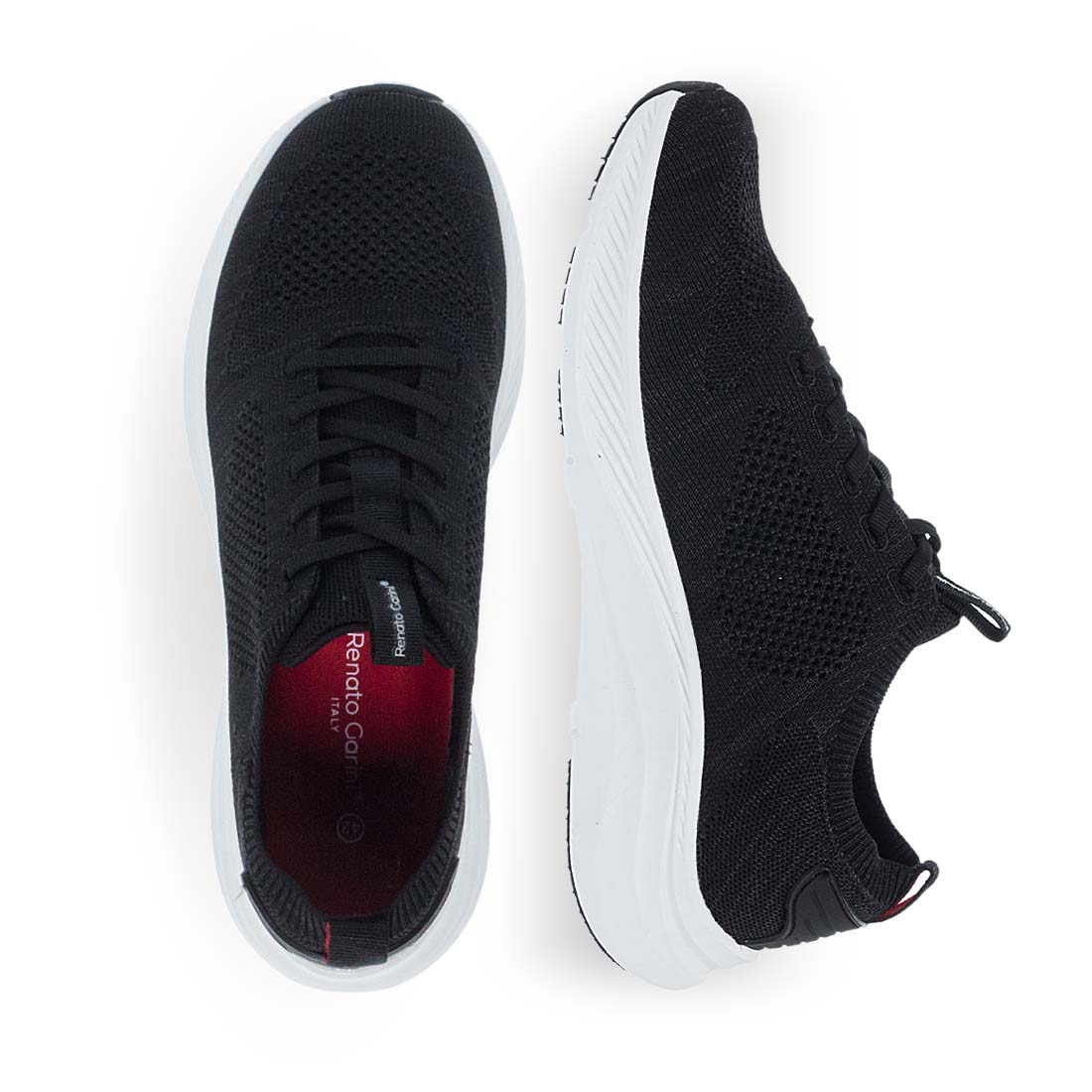 Black comfortable sneakers by Renato Garini. Made of fabric and faux leather. Lace up closure. Suitable to wear day to night. Designed with high level of quality and comfort. Breathable and comfortable pair.