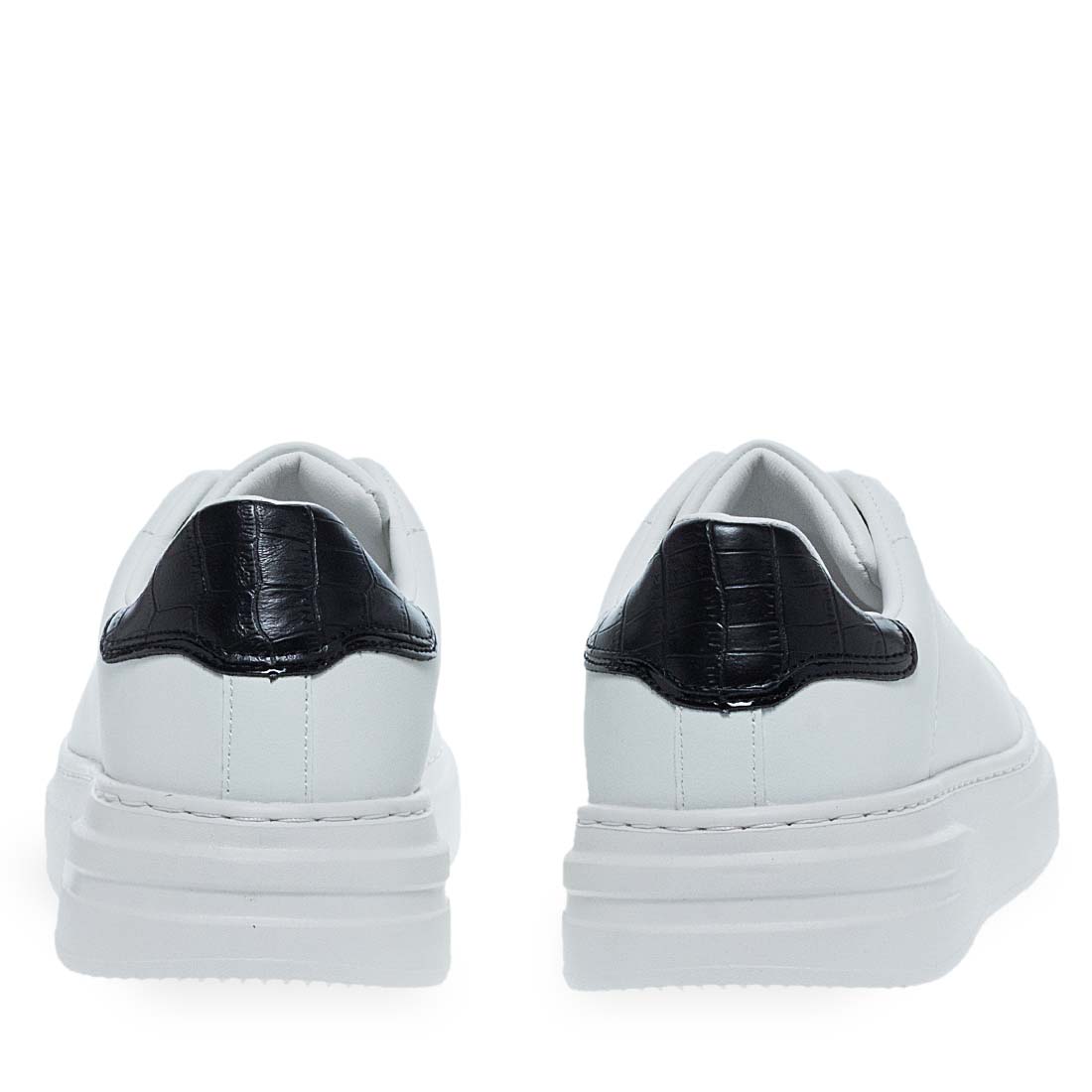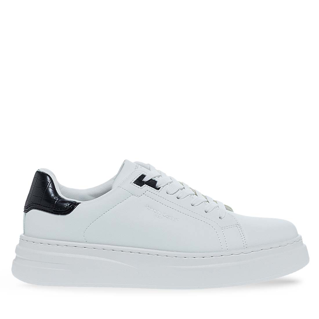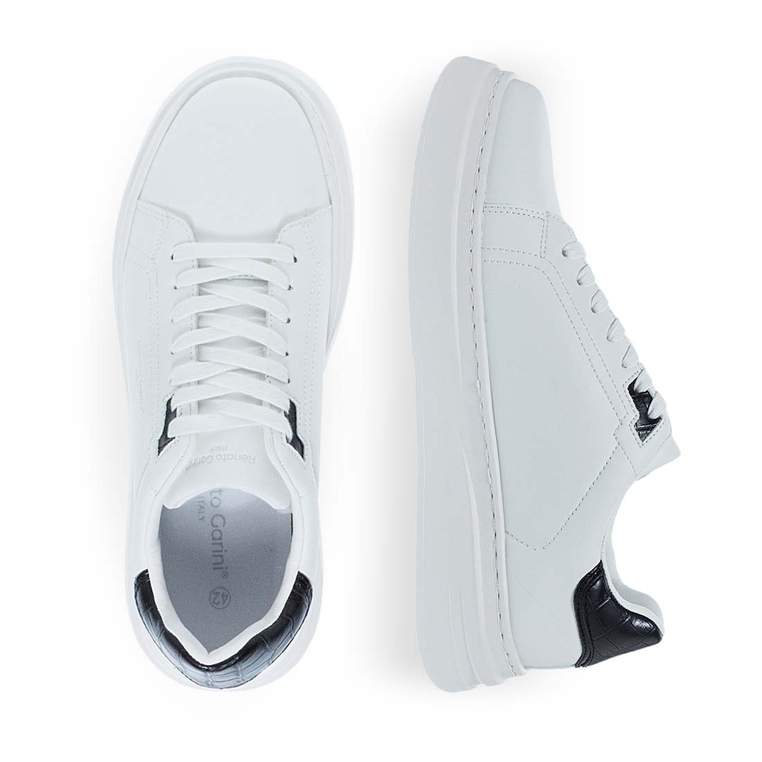 Men''s sneakers by Renato Garini. White sneakers with black heel detail and minimal design.