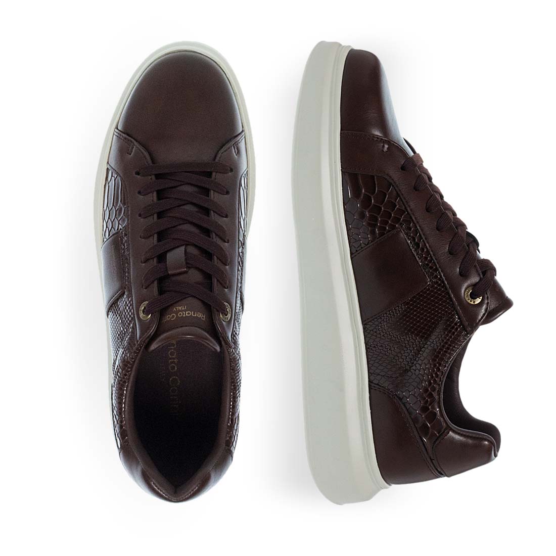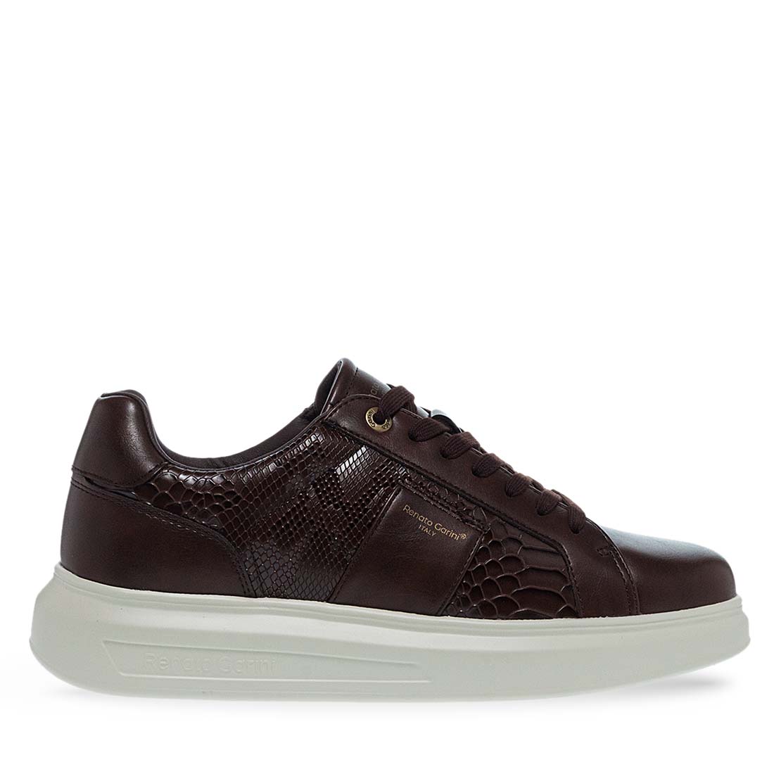 Men''s sneakers by Renato Garini. Men’s brown sneakers with croco pattern and white sole for a standout style.