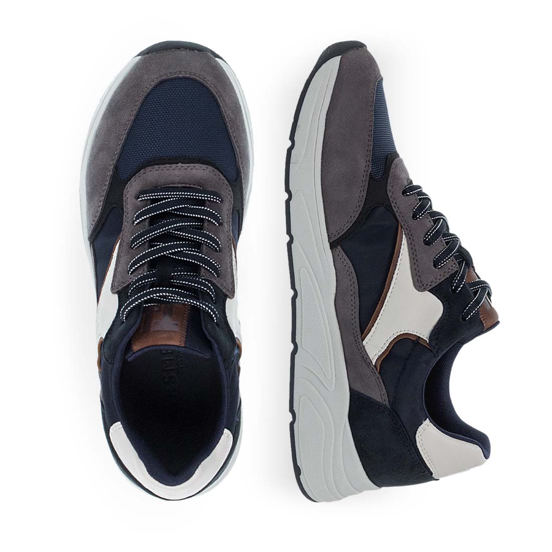 Men''s sneakers by Tamaris. Men’s grey and navy sneakers, with lightweight sole and modern design for a casual look.