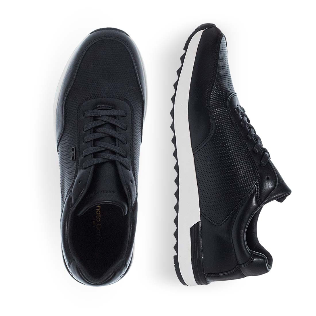 Renew your casual style with these modern sneakers for men by new Renato Garini collection. They have a very soft insole and a durable sole. Available in black color with white sole in contrast. Lace up design for easy application. Premium quality eco leather.
