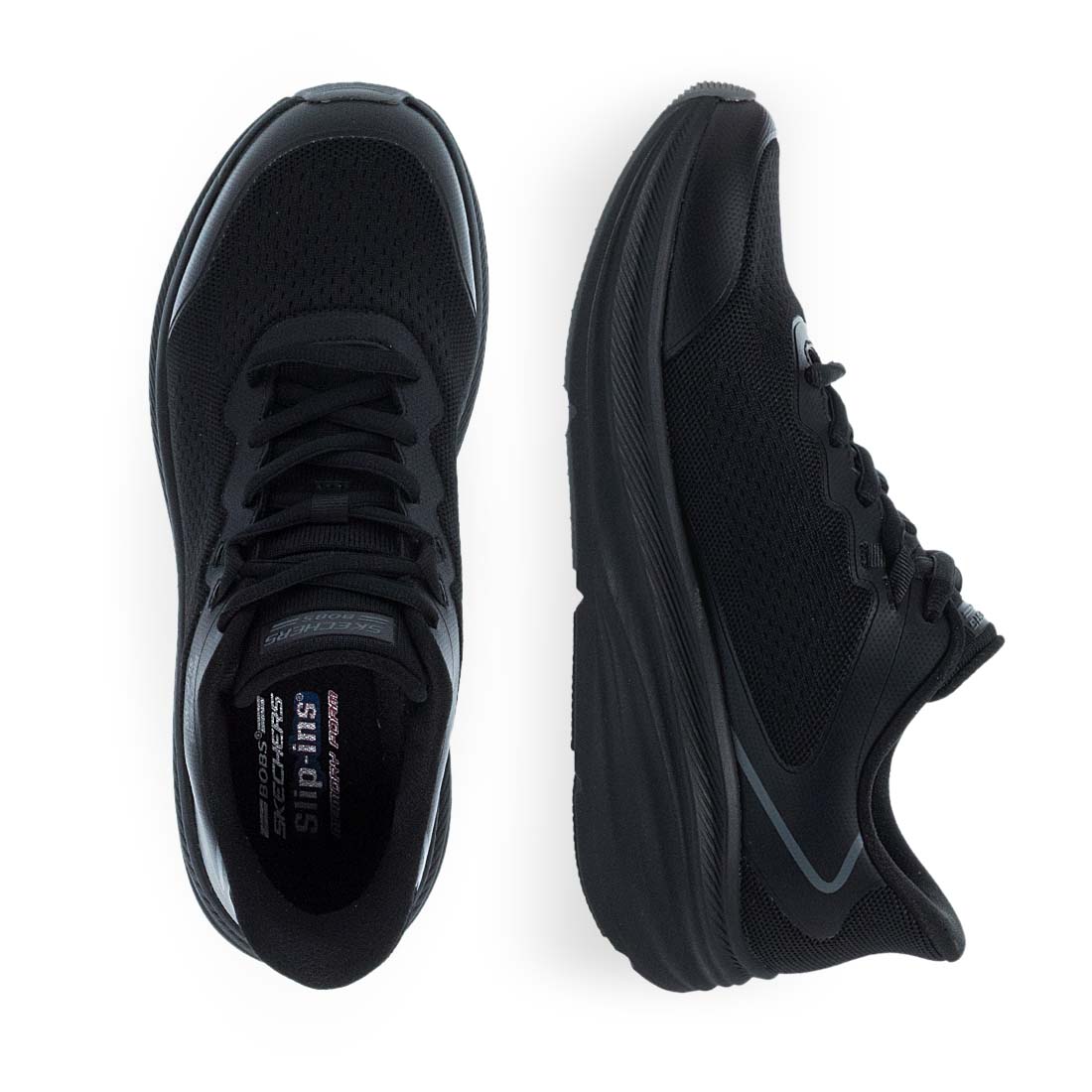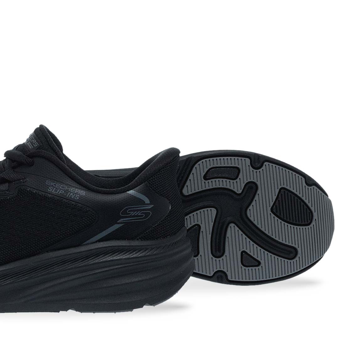Men''s trainers by Skechers. Men’s Skechers black trainers with grey details. Comfortable sole for walking and training.