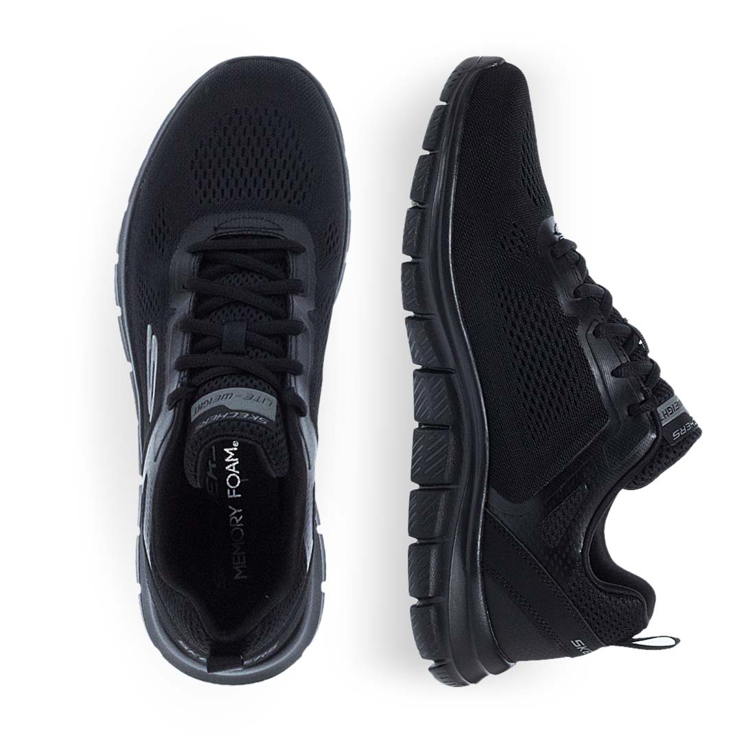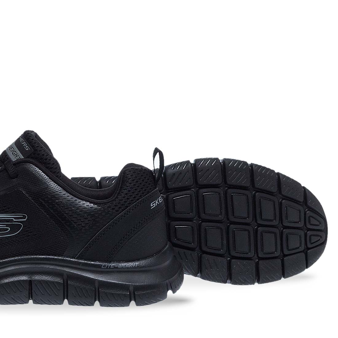 Make yours these monochrome sneakers for men by Skechers Track Broader in black color. Lace-up fastening. Soft mesh fabric on the upper part that let the foot breathe. They have an extremely soft footbed and an non-vibration midsole. This design will upgrade your look.