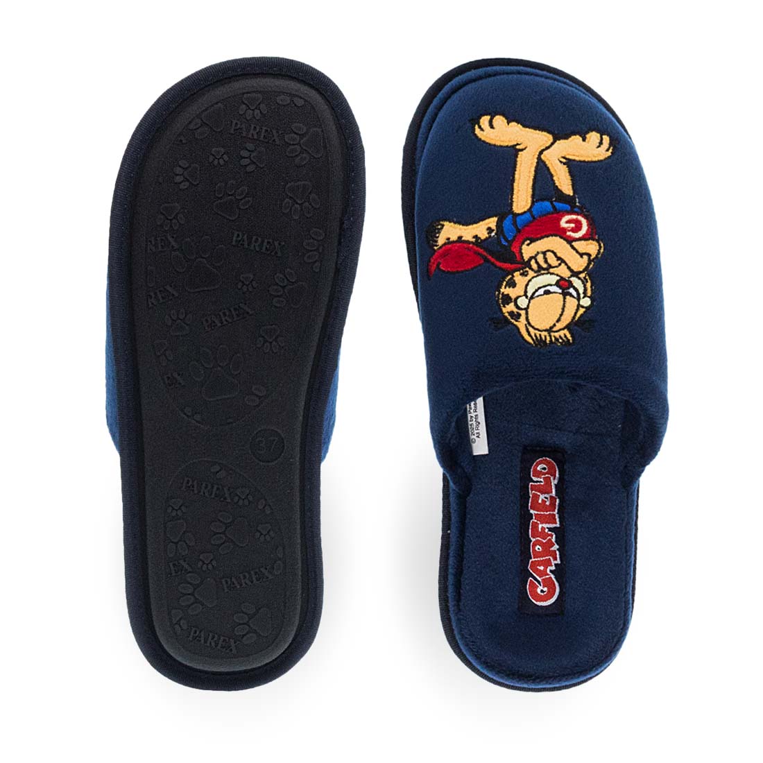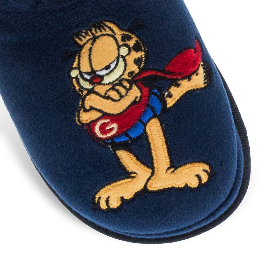 Teen''s house slippers by Garfield. Men''s Garfield slippers with Super Garfield embroidery, perfect for cozy and humorous home moments.
