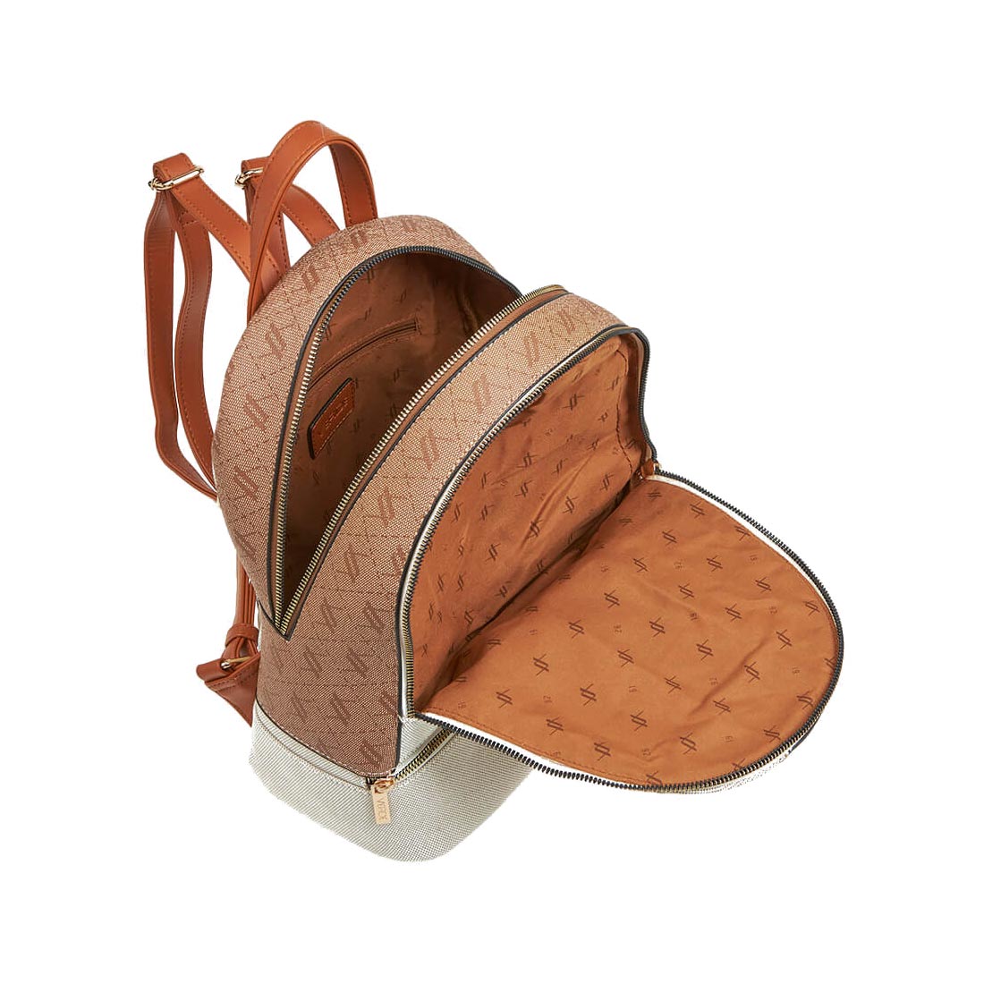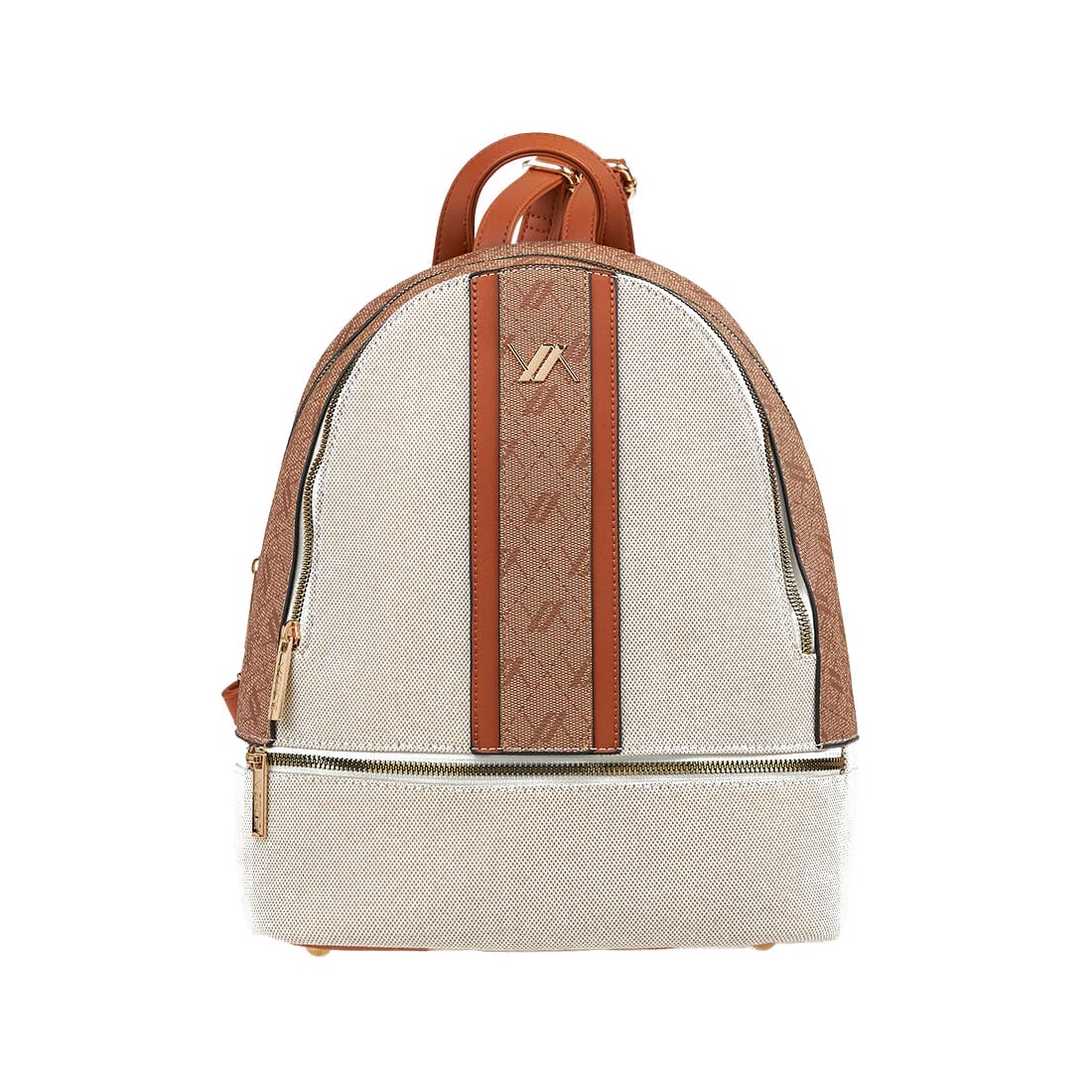 Women''s backpack by Verde in off-white and kamel colour. Ideal choice for all hours of the day, offers comfort and matches every style. Dimensions: 27x15x34,5 cm.