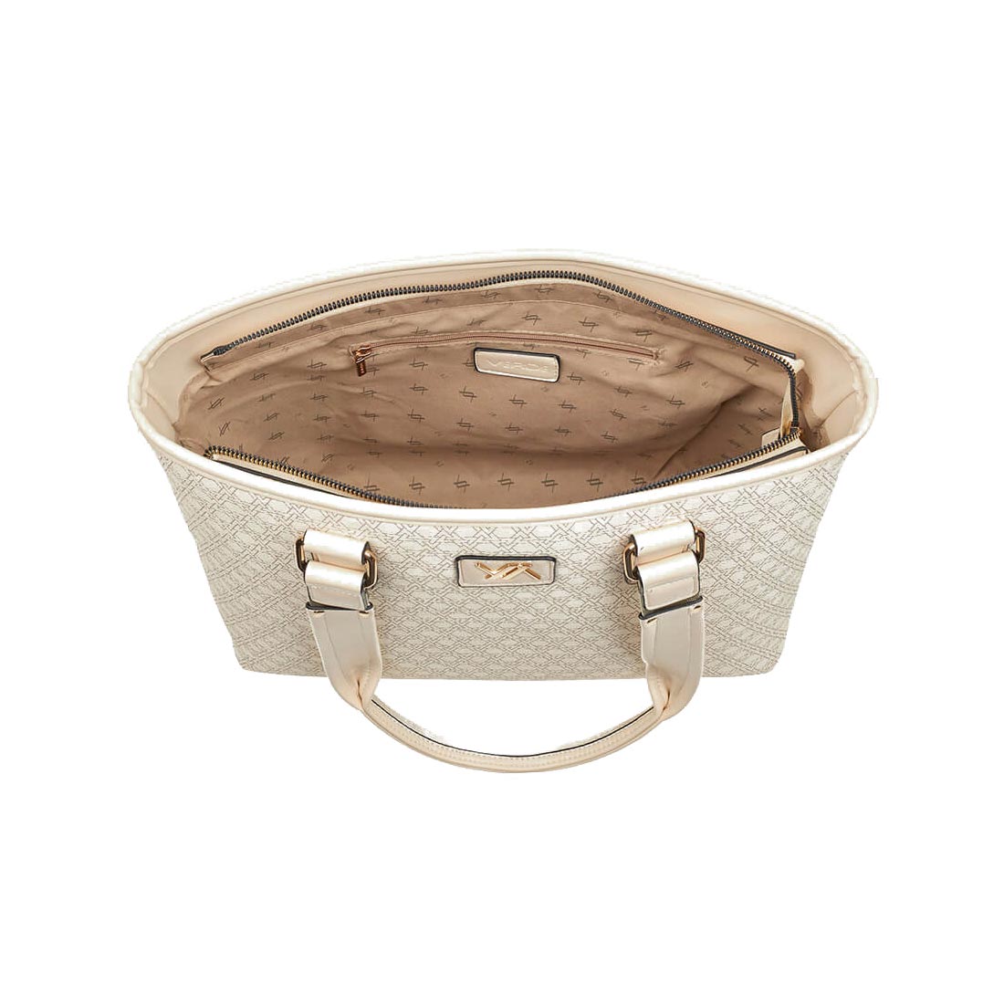 Women''s bag by Verde in grey and beige colour. Ideal choice for all hours of the day, offers comfort and matches every style. Dimensions: 40x12,5x29,5 cm.