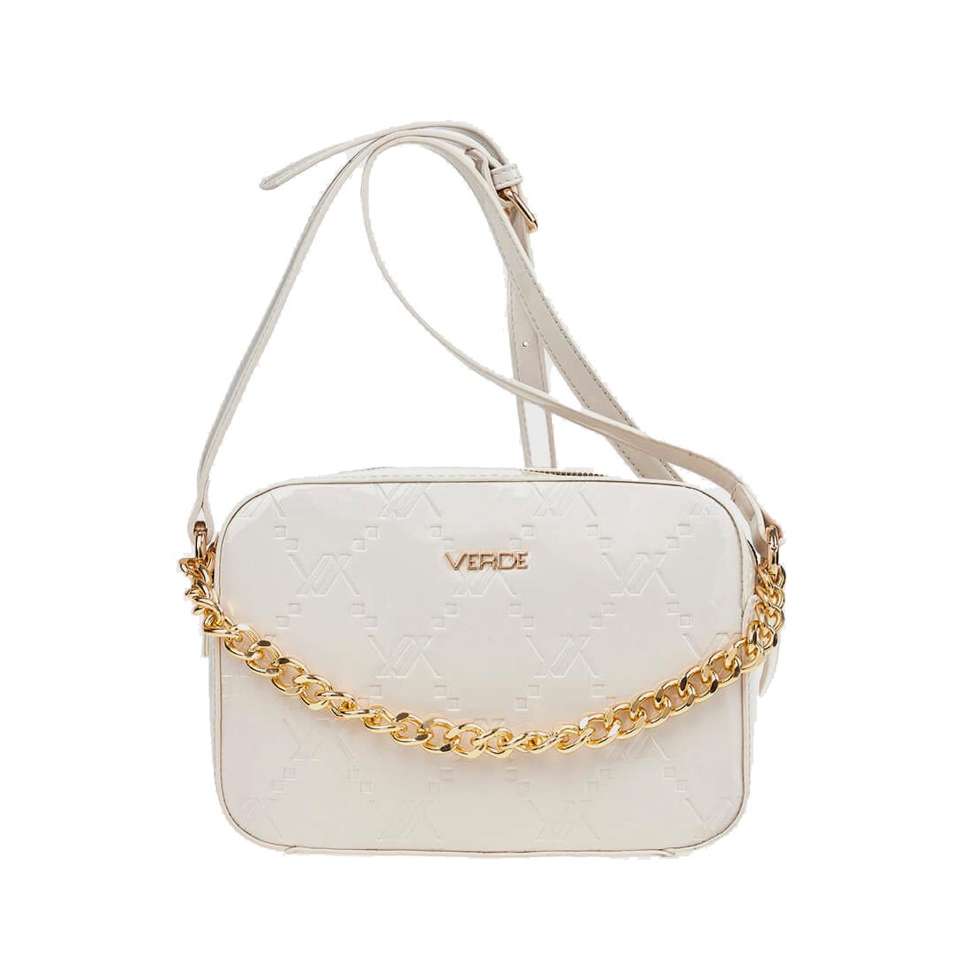 Women''s crossbody bag by Verde in off-white and beige colour. Ideal choice for all hours of the day, offers comfort and matches every style. Dimensions: 22,5x8,5x16,5 cm.