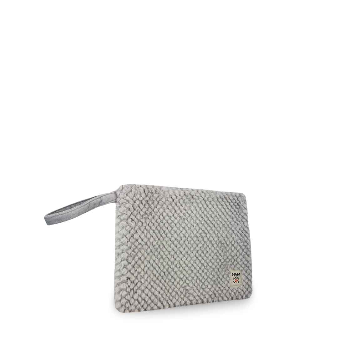 Women''s bag made of soft fabric in pink and grey color. Zip fastening. 25X18CM.