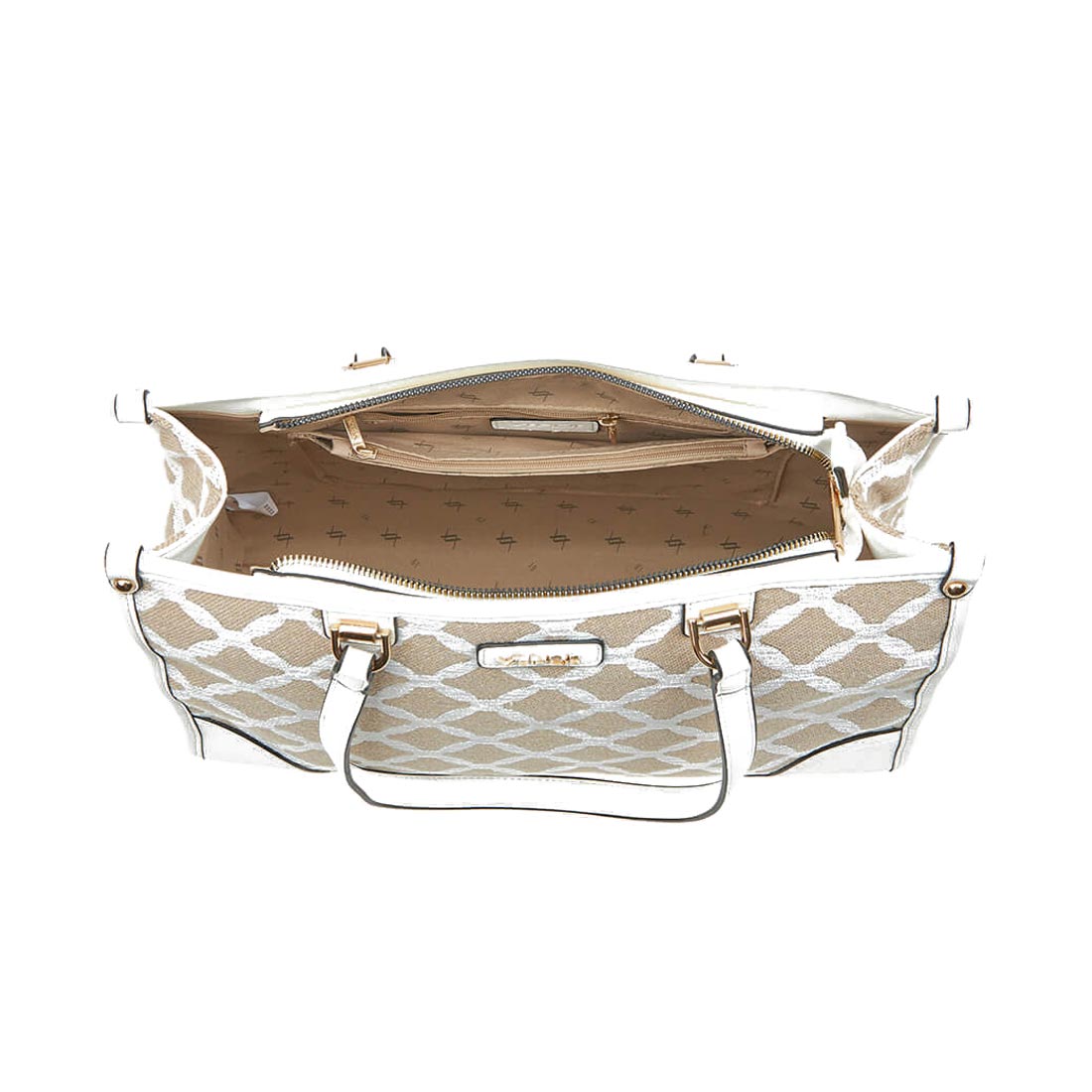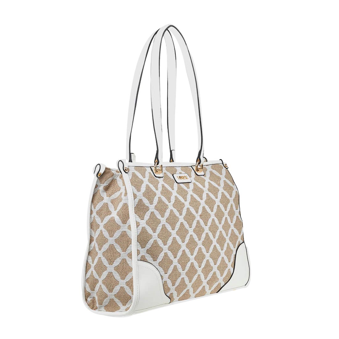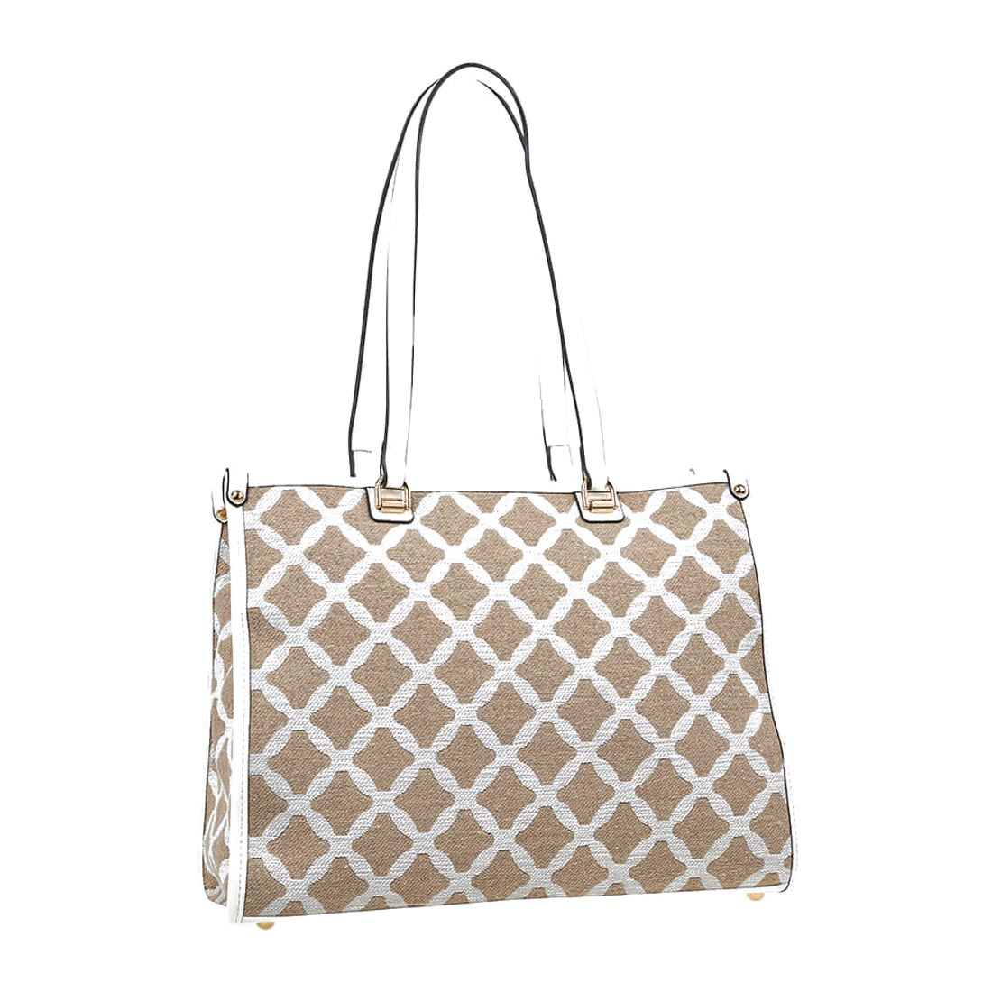 Women''s shoulder bag by Verde in white and black colour. Ideal choice for all hours of the day, offers comfort and matches every style. Dimensions: 38,5x14x30,5 cm.