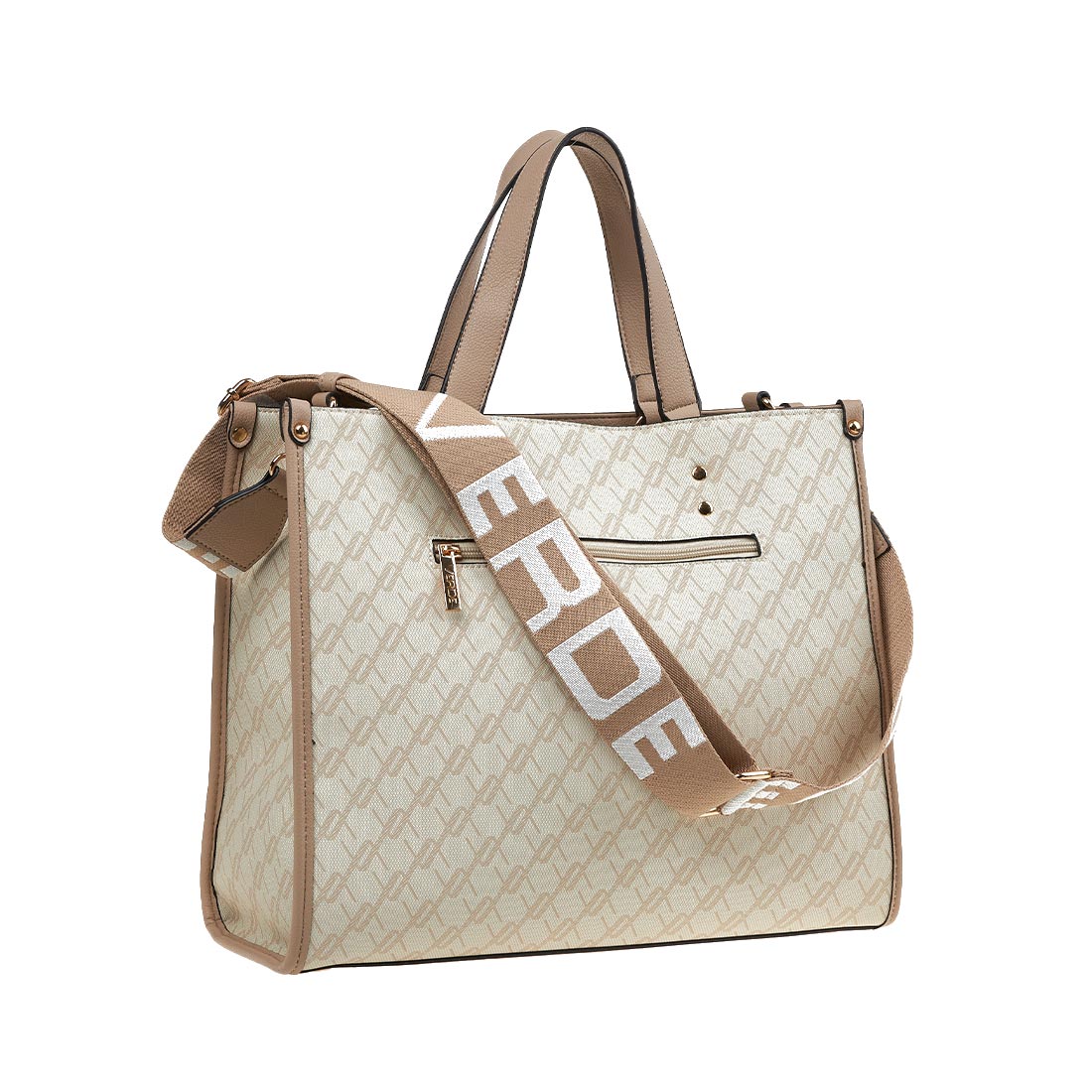 Women''s tote bag by Verde in beige and blue colour. Ideal choice for all hours of the day, offers comfort and matches every style. Dimensions: 38x15x32 cm.