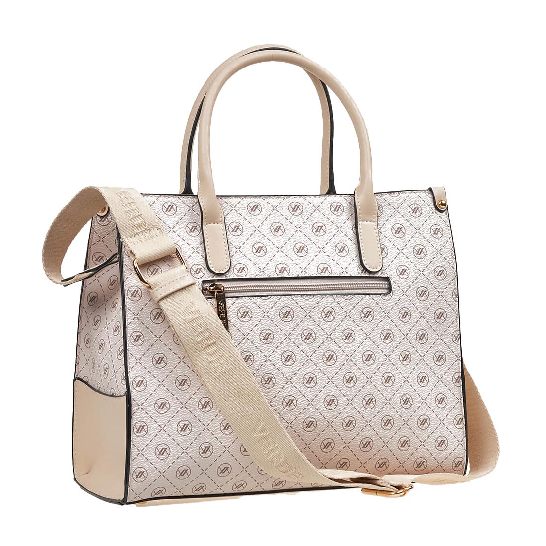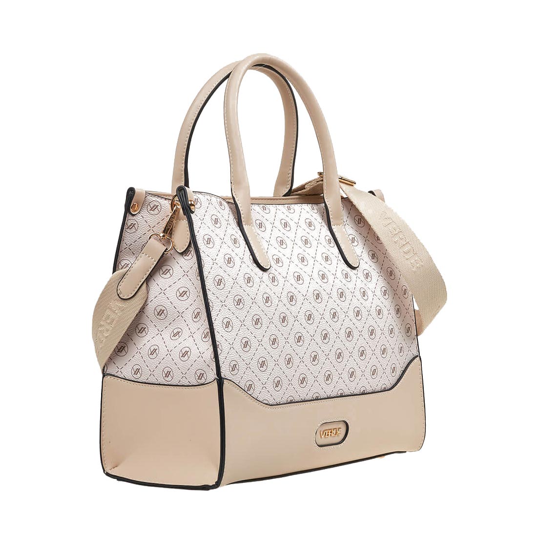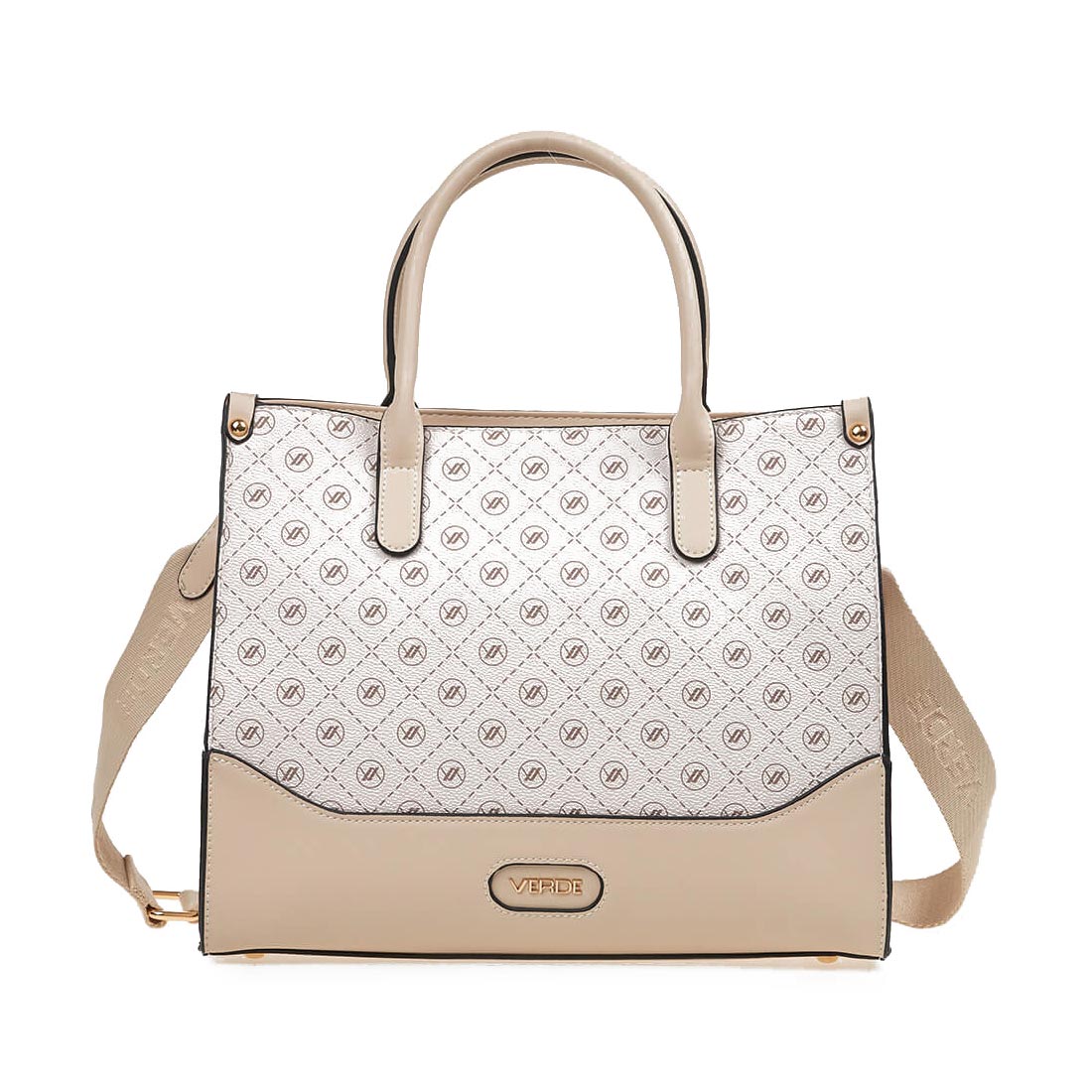 Women''s tote bag by Verde in off-white colour. Ideal choice for all hours of the day, offers comfort and matches every style. Dimensions: 33x14x28,5 cm.