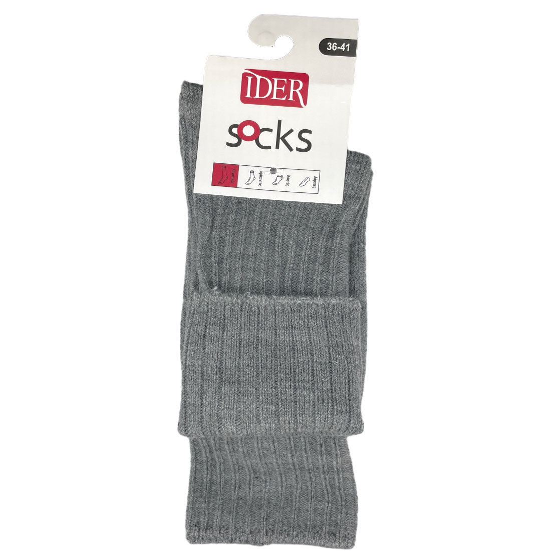 Women''s socks by Ider. Women''s ribbed Ider socks with a rolled cuff in grey, lilac, and green colors. Comfortable and stylish, they add a cozy touch to any casual look and are suitable for all seasons.