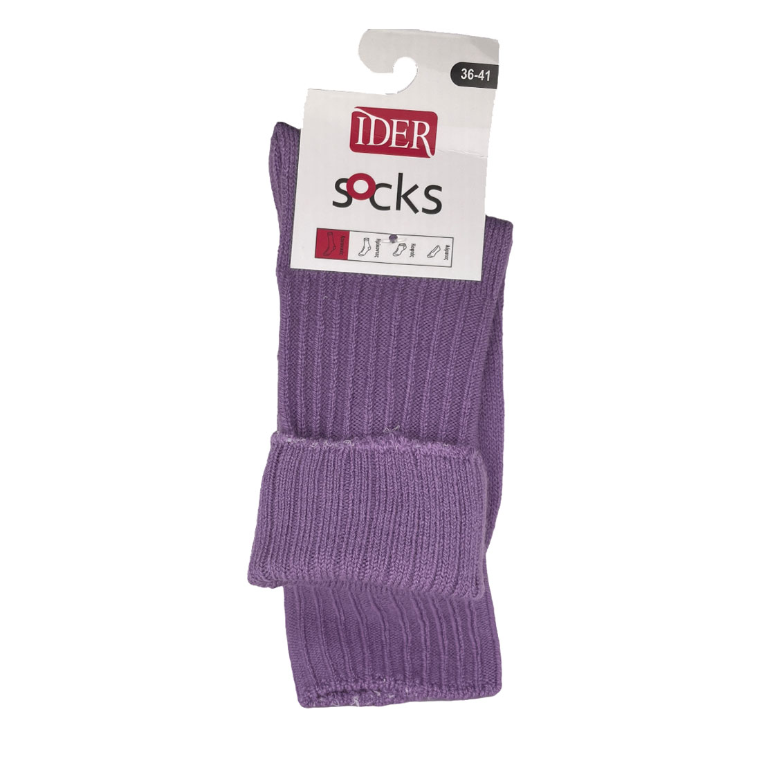 Women''s socks by Ider. Women''s ribbed Ider socks with a rolled cuff in grey, lilac, and green colors. Comfortable and stylish, they add a cozy touch to any casual look and are suitable for all seasons.