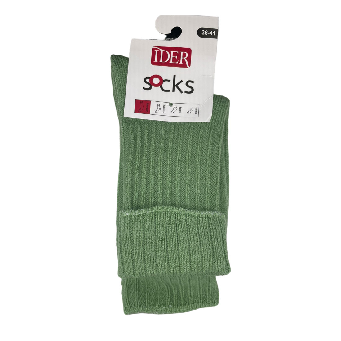 Women''s socks by Ider. Women''s ribbed Ider socks with a rolled cuff in grey, lilac, and green colors. Comfortable and stylish, they add a cozy touch to any casual look and are suitable for all seasons.