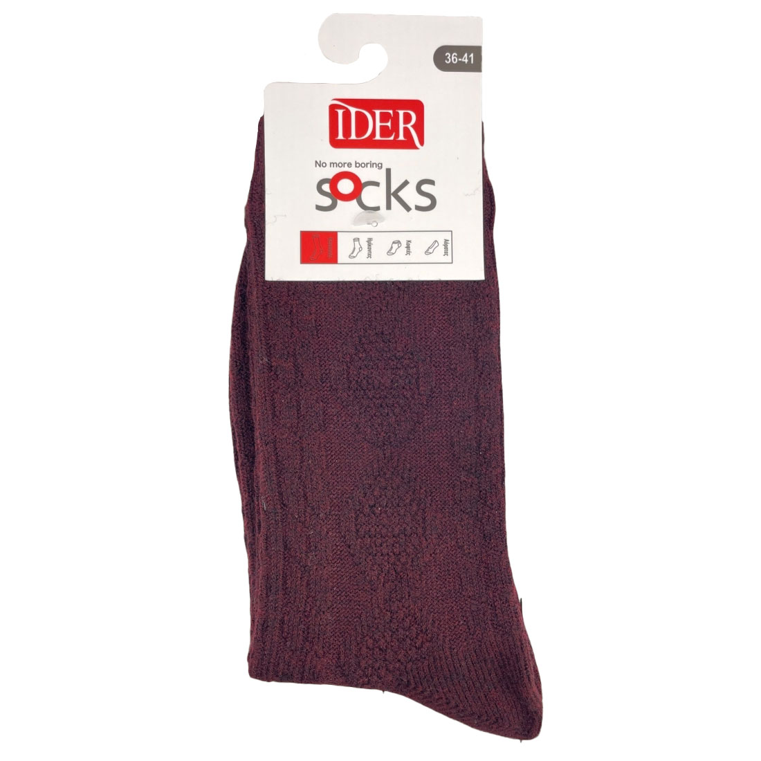 Women''s socks by Ider. Women''s knitted Ider socks with a subtle cable-knit pattern in black, beige, and burgundy. Warm and soft, perfect for cold winter days. They combine a cozy feel with understated elegance for all-day comfort.