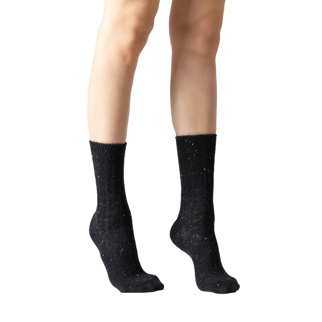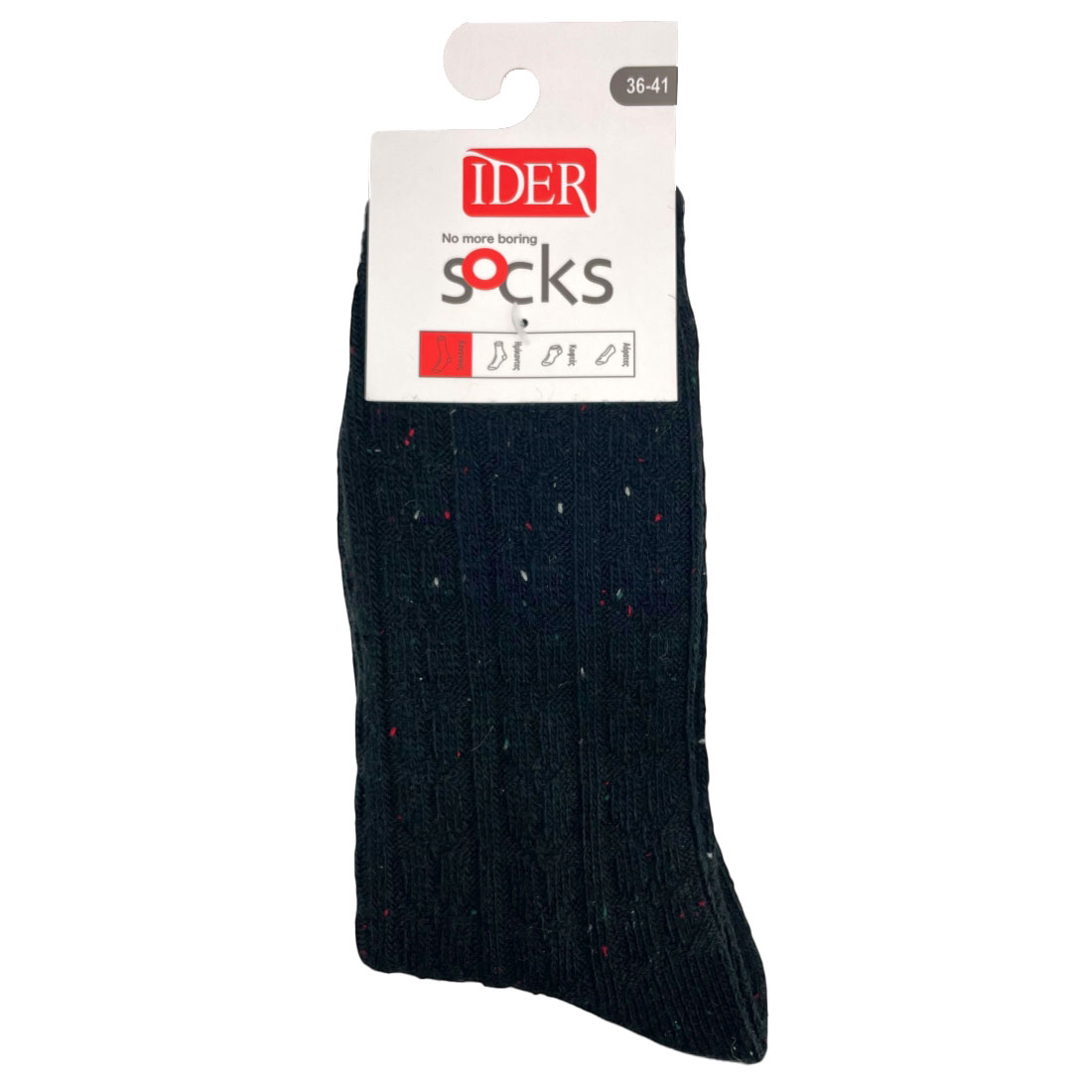 Women''s socks by Ider. Women''s Ider socks with a knitted texture and colorful speckles in black and grey tones. Perfect for everyday wear, offering natural softness and style with a playful touch.