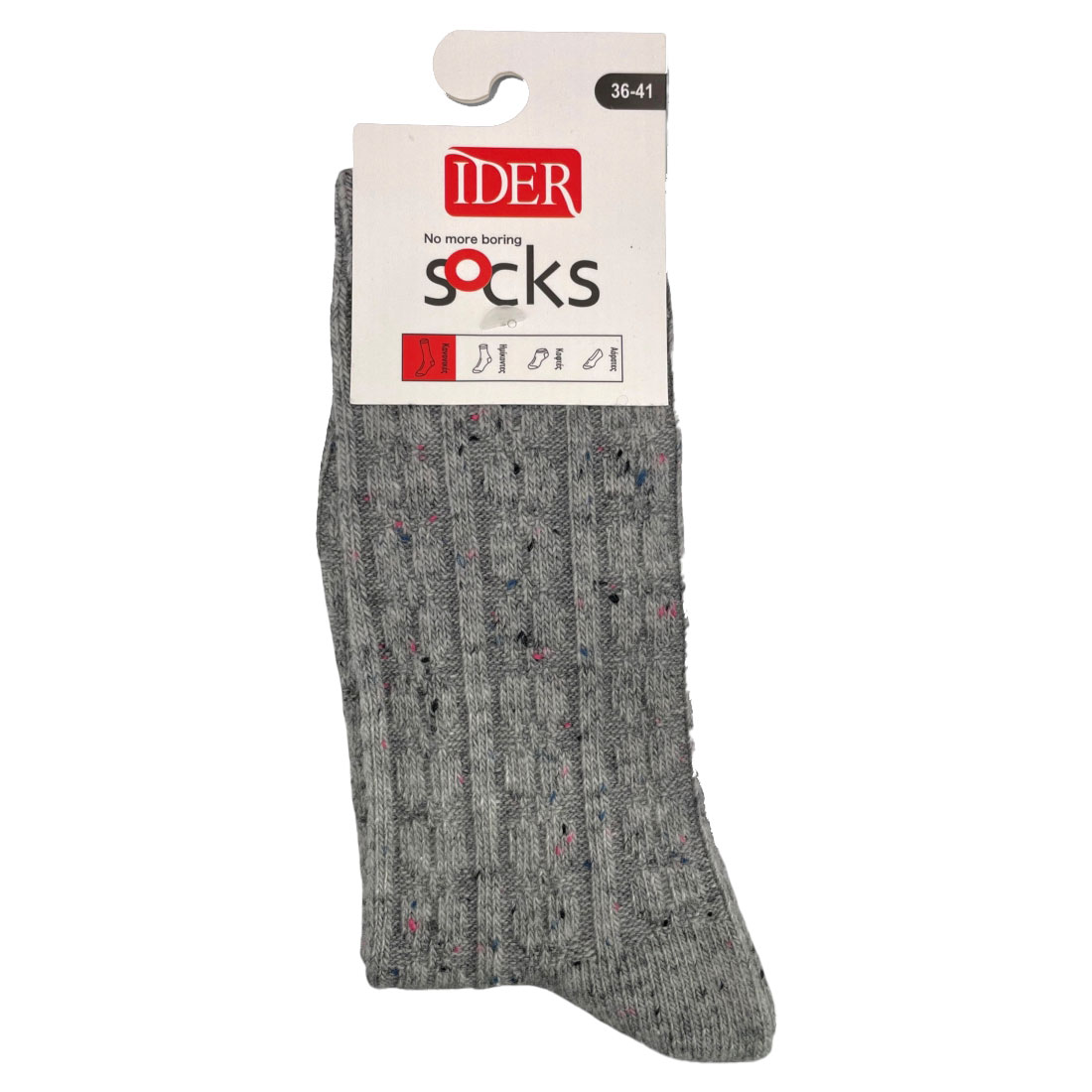 Women''s socks by Ider. Women''s Ider socks with a knitted texture and colorful speckles in black and grey tones. Perfect for everyday wear, offering natural softness and style with a playful touch.